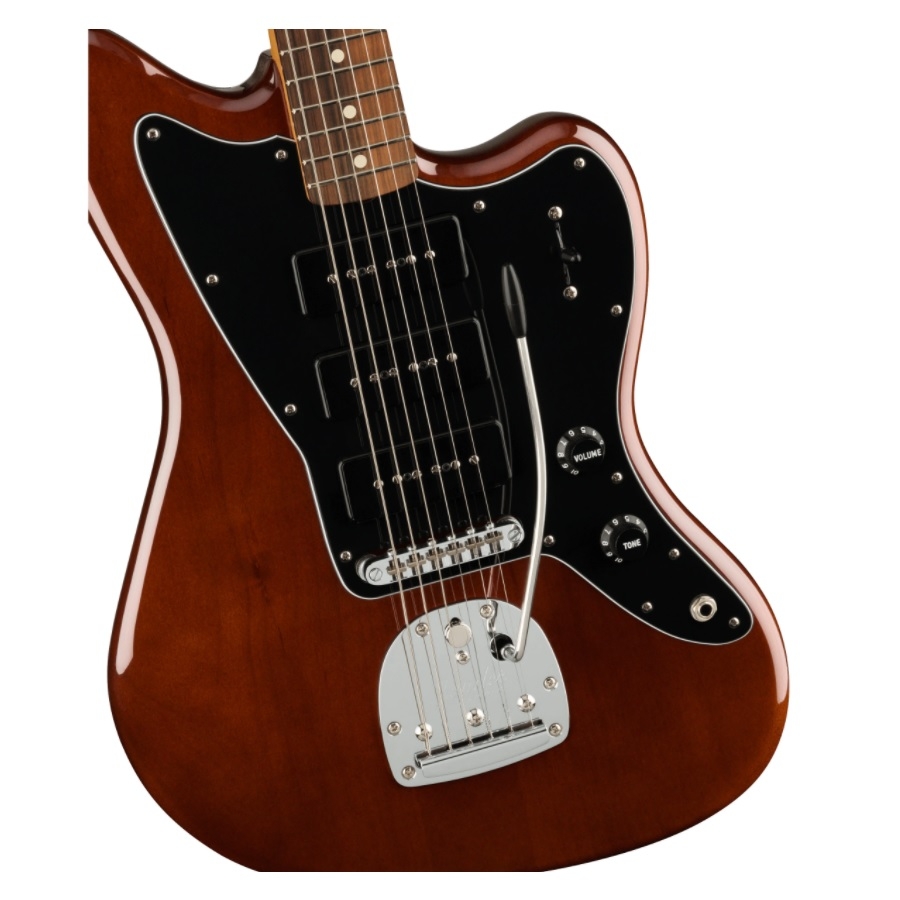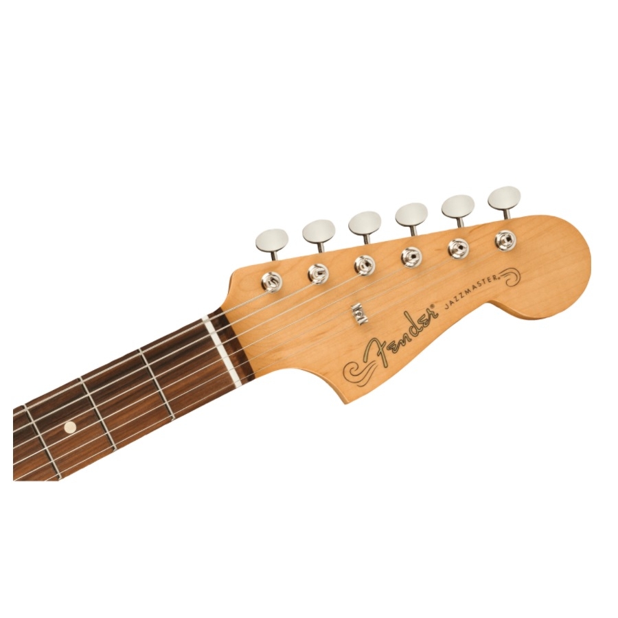 Dit is de Jazzmaster uit de Noventa Serie. De gitaar heeft drie P90 elementen, waardoor er enorm veel opties zijn. Echter is dit redelijk uniek; drie P90 elementen worden niet vaak gebruikt voor Jazzmasters. Het heeft wel voordelen: met deze P90 elementen klinkt het geluid van de Jazzmaster veel voller en warmer dan bij een standaard Jazzmaster. De elementen zijn af te stellen met de vijfstandenschakelaar. Daarnaast heeft de gitaar ook een volume- en een toonknop. De Noventa Jazzmaster werkt geweldig met allerlei soorten effectpedalen, en is daarom ook de ultieme gitaar voor de creatieve gitarist. De aparte walnootkleur geeft de gitaar een opvallende en unieke uitstraling. Bovendien heeft de gitaar veel vintage kenmerken. Zodoende heeft de gitaar een jaren ’70 kopstuk en stemknoppen, en is het originele tremolo systeem ook toegevoegd. De body is gemaakt van elzenhout en de hals en toets van esdoornhout. Kortom, de kenmerkende Jazzmaster met een moderne twist!