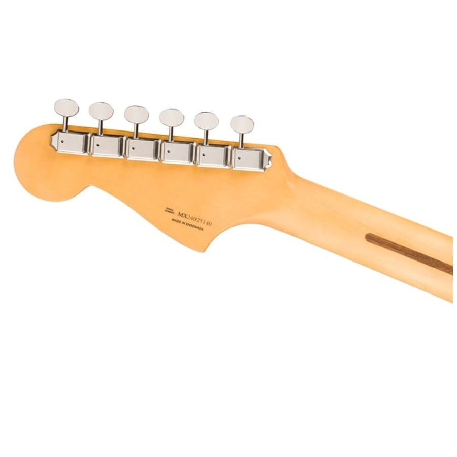 De Fender Player II Jazzmaster is een geweldige gitaar voor een goede prijs. Deze Jazzmaster bevat alle verbeteringen met de Player II serie. Daarnaast bevat de gitaar twee Alnico V Single-Coil Jazzmaster elementen waardoor de gitaar prachtig heldere hoge tonen, brede midden tonen en stevige lage tonen kan produceren. Met de driestandenschakelaar kunt u kiezen tussen het brugelement, het halselement of beide tegelijkertijd. Bovendien is de gitaar ook van hoge kwaliteit materialen gemaakt. De body is van elzenhout gemaakt, wat voor een lichte basis zorgt met een geweldige sustain. De hals is van esdoornhout gemaakt en de toets van palissander. Dit is een fijne combinatie wat voor een comfortabele speelervaring zorgt.