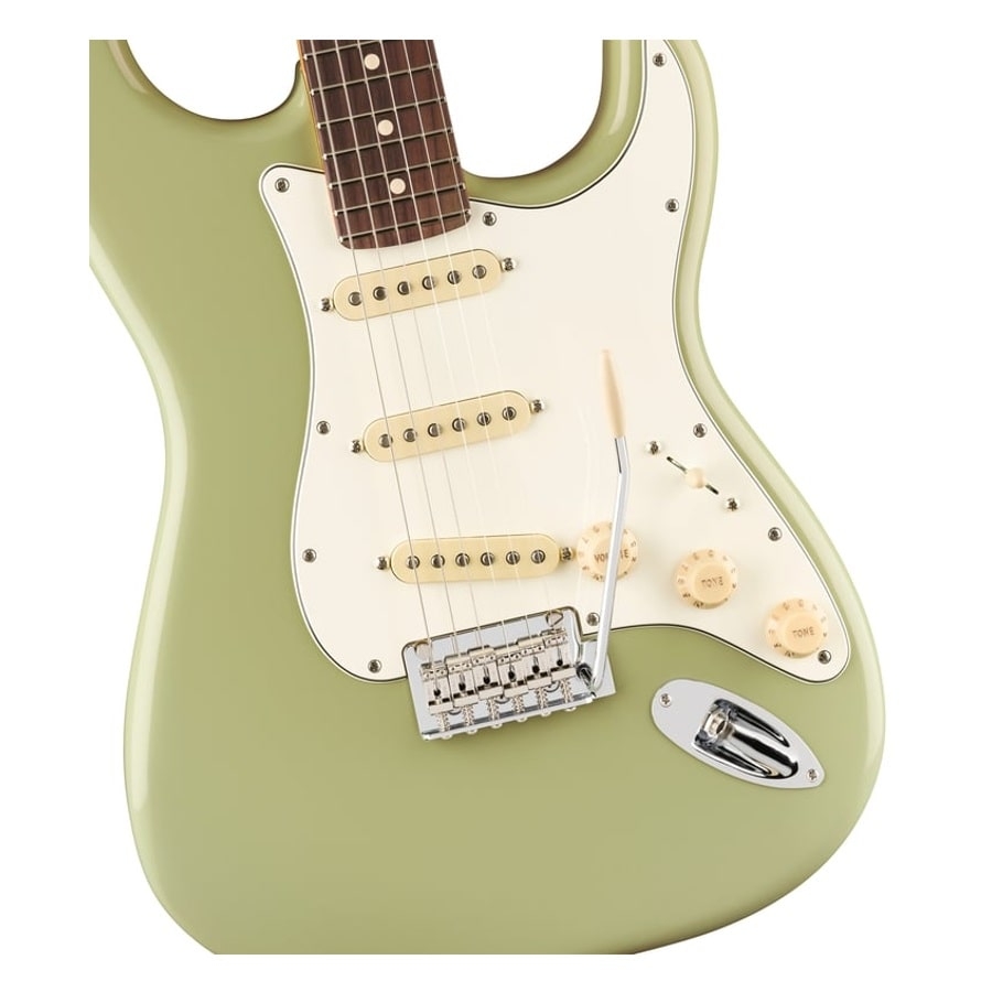 De Fender Player II Stratocaster is een geweldige gitaar voor een goede prijs. Deze Stratocaster bevat alle verbeteringen met de Player II serie. Daarnaast bevat de gitaar drie Alnico V Single-Coil Stratocaster elementen waardoor de gitaar prachtig heldere hoge tonen, brede midden tonen en stevige lage tonen kan produceren. Met de vijfstandenschakelaar kunt u kiezen tussen vijf verschillende elementconfiguraties. Bovendien is de gitaar ook van hoge kwaliteit materialen gemaakt. De body is van essenhout gemaakt, wat voor een stevige basis en een gebalanceerd geluid zorgt. De hals is van esdoornhout gemaakt en de toets van palissander. Dit is een fijne combinatie wat voor een comfortabele speelervaring zorgt.
