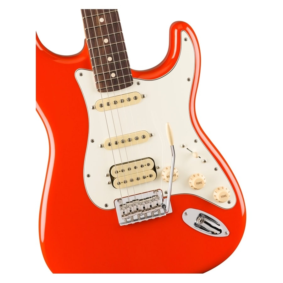 De Fender Player II Stratocaster HSS is een geweldige gitaar voor een goede prijs. Deze Stratocaster bevat alle verbeteringen met de Player II serie. Daarnaast bevat de gitaar twee Alnico V Single-Coil Stratocaster elementen en een Alnico II humbucker waardoor de gitaar prachtig heldere hoge tonen, brede midden tonen en stevige lage tonen kan produceren. De HSS configuratie zorgt ervoor dat de gitaar extra veelzijdig is. Met de vijfstandenschakelaar kunt u kiezen tussen vijf verschillende elementconfiguraties. Bovendien is de gitaar ook van hoge kwaliteit materialen gemaakt. De body is van mahoniehout gemaakt, wat voor een warm en krachtig geluid zorgt. De hals is van esdoornhout gemaakt en de toets van palissander. Dit is een fijne combinatie wat voor een comfortabele speelervaring zorgt.