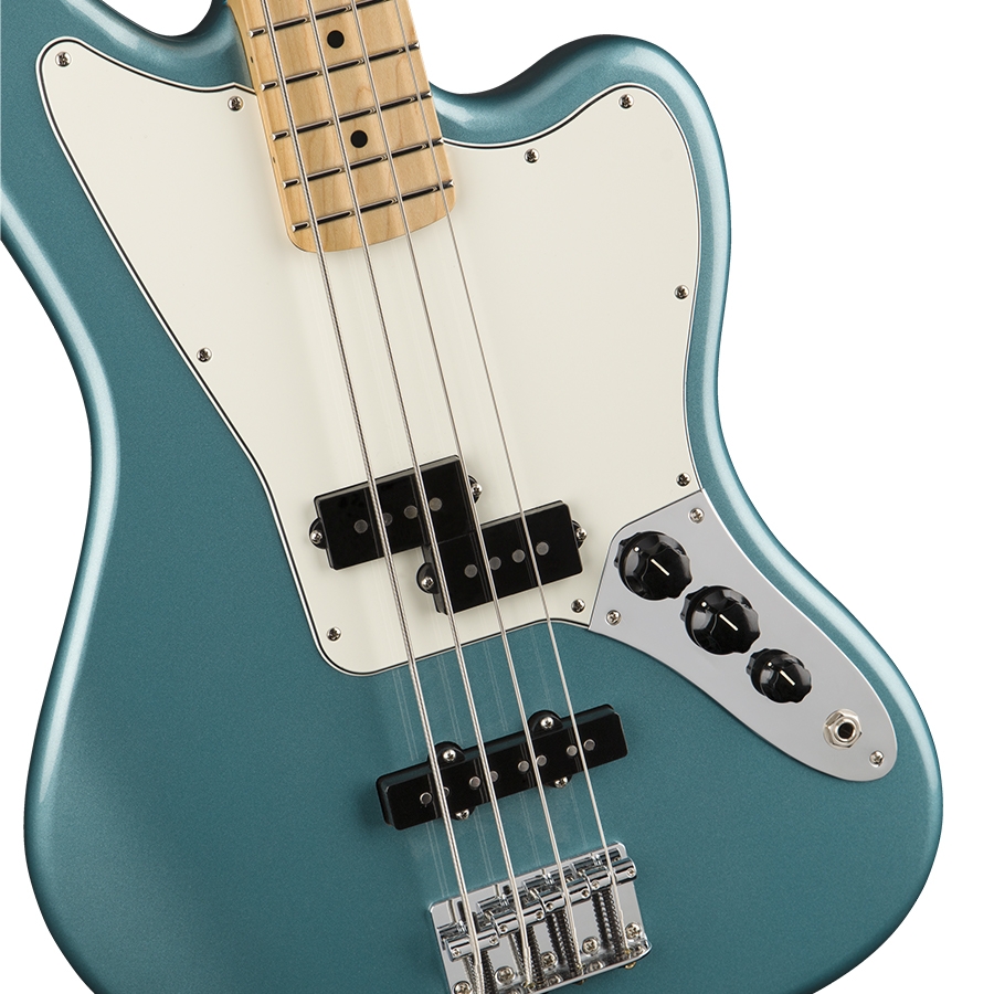 Het meest opvallende aan de Jaguar is natuurlijk de vorm. Omdat hij een relatief kleine offset body heeft voelt hij modern aan en speelt hij zowel staand als zittend erg comfortabel. De Tidepool kleur heeft een prachtige hoogglans afwerking en zal zeker opvallen op het podium. Daarnaast heeft Fender met de Player instrumenten de hardware geüpgraded naar een professioneel niveau zodat u zich geen zorgen hoeft te maken over de kwaliteit. Ook de pickups zijn dus van hoge kwaliteit. Met een Jazz bass brugpickup en een P-bass double pickup in het midden kunt u uit deze basgitaar alle bekende Fender klanken halen. Dit betekent dat hij uiterst geschikt is voor veel muziekgenres zoals blues, rock, country, funk en zelfs jazz! Kortom: De nieuwe Fender Player Jaguar basgitaar is een uitstekende keuze voor de Fender liefhebber die geen standaard basgitaar wilt!