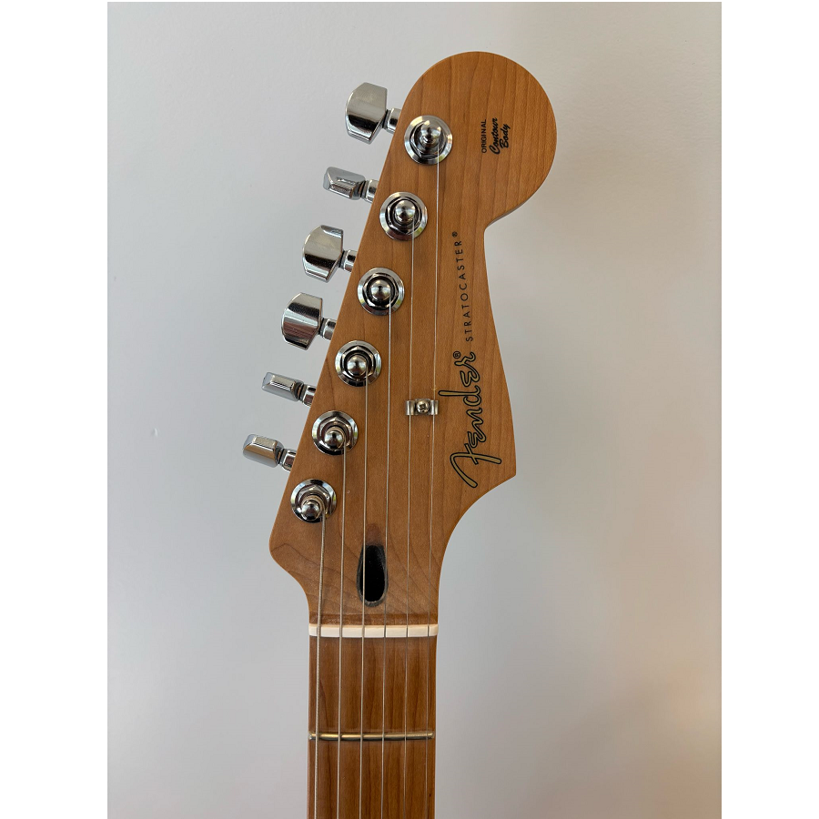Hals en toets: Een roasted maple hals en toets met een moderne "C"-vormige profiel en een radius van 9.5 inch, wat bijdraagt aan een comfortabele speelervaring. De hals is afgewerkt met satijnpolyurethaan voor een soepele feel.
