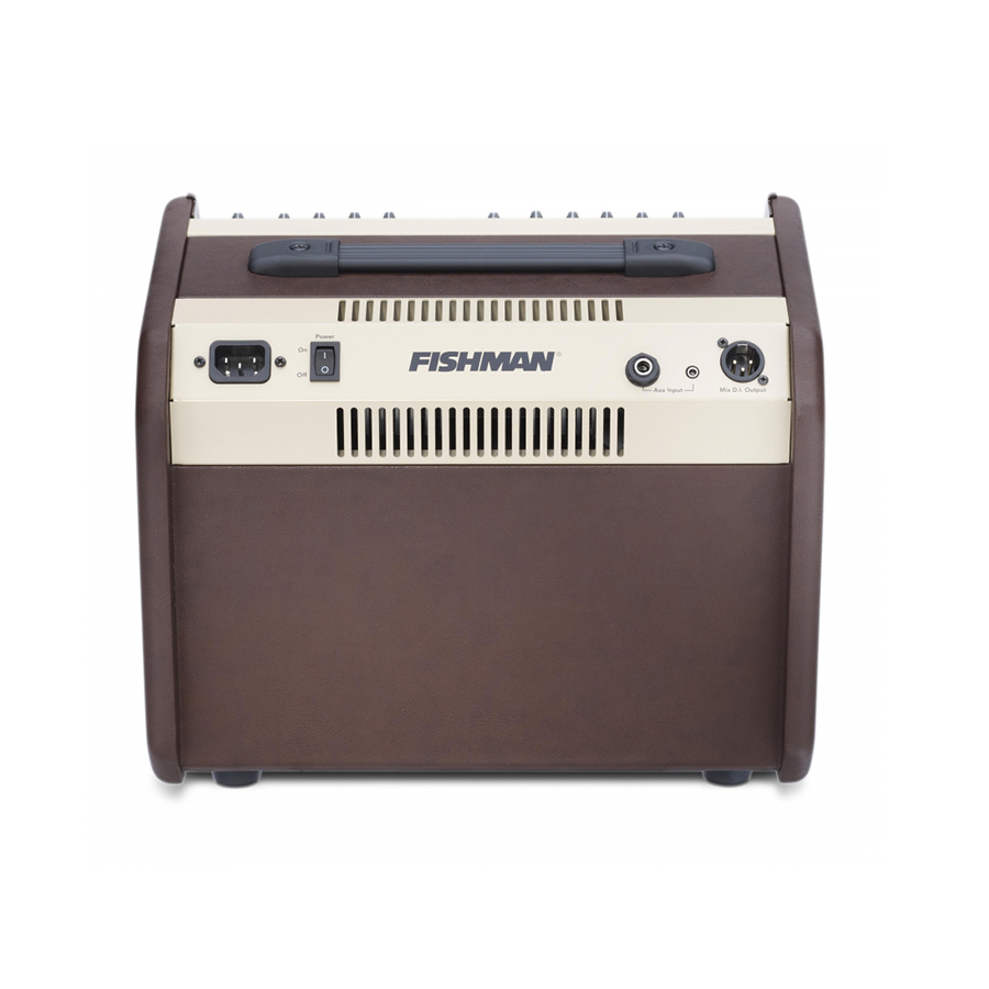 Qua ingangen beschikt de versterker over twee kanalen. Het eerste kanaal is de instrumentingang en hierop kan de gitaar worden aangesloten. Het tweede kanaal is voorzien van een XLR-aansluiting en is hiermee geschikt voor een microfoon. Beide kanalen beschikken over een equalizer waarmee afzonderlijk de lage, midden en hoge tonen geregeld kunnen worden. Het instrumentenkanaal beschikt over een reverb en een chorus effect. Het microfoonkanaal beschikt over een reverb. De versterker beschikt aan de achterkant ook nog over een aux-input. Op deze ingang kan een audiosignaal zoals een mobiele telefoon, tablet of MP3-speler worden aangesloten. De afgespeelde muziek op u audiobron wordt afgespeeld via de Fishman versterker.