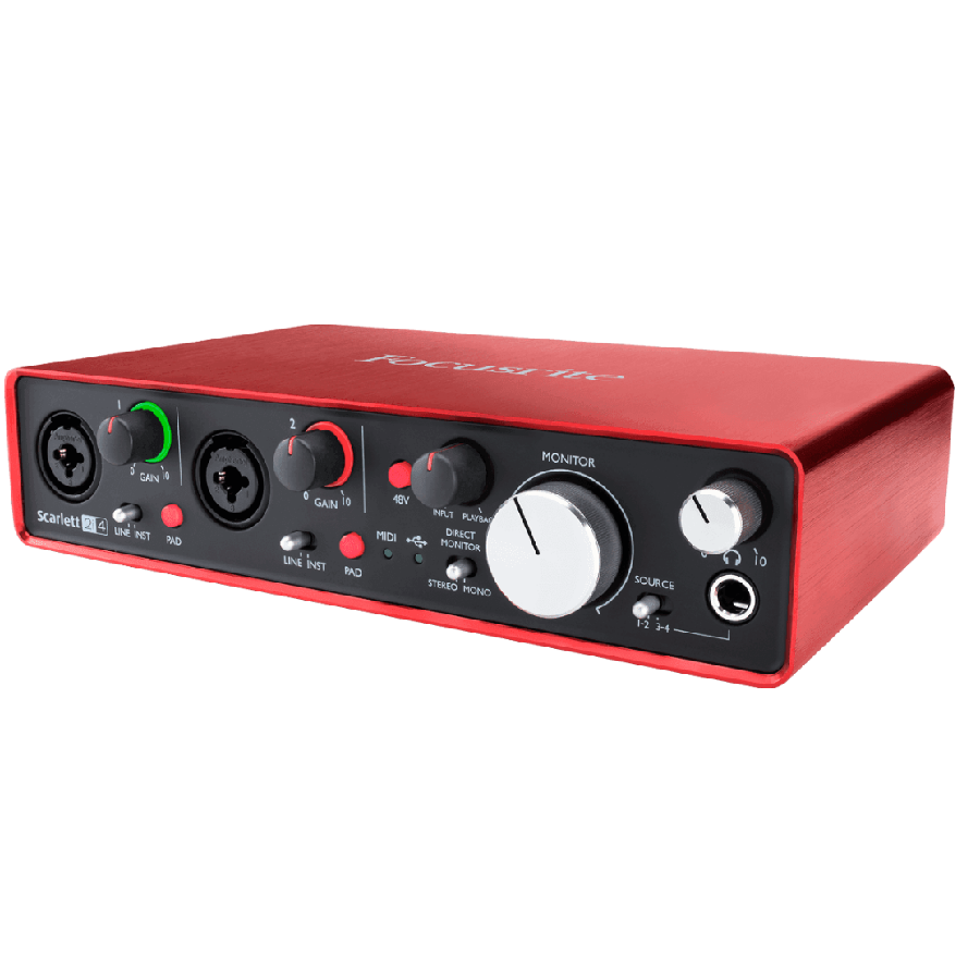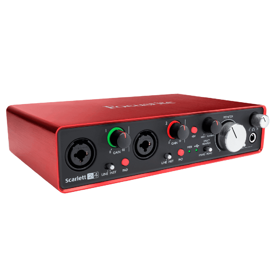 De Focusrite Scarlett 2i4 is de tweede generatie van een de meest verkochte USB-geluidskaart van de wereld. Deze geluidskaart maakt deel uit van de Scarlett-serie, een lijn geluidskaarten waarmee Focusrite zich heeft gevestigd in de wereldtop. De geluidskaart heeft een chic design en een opvallende rode kleur. De goede positie in de markt heeft deze geluidskaart bereikt door de gebruiksvriendelijkheid en de lage latency en dat alles ondanks een zeer betaalbare prijs. Deze geluidskaart is erg geschikt voor singer/songwriters en gitaristen.