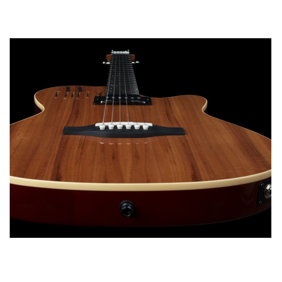 De achter- en zijkanten van de semi-hollow body zijn van esdoornhout gemaakt. Esdoornhout zorgt voor een helder geluid met een geweldige projectie. Het bovenblad is van koa gemaakt. Koa is een opvallende houtsoort. Koa komt namelijk uit Hawaii en werd initieel voor ukeleles gebruikt, toen deze naar Hawaii werden gebracht. Daar werden de klankkwaliteiten van koa ontdekt. Koa heeft een ongeëvenaard en typerend geluid; een prachtig warme klank met een heldere resonantie. Koa is daarom erg populair, maar het is ook zeldzaam. Zodoende wordt het tegenwoordig bijna alleen nog gebruikt op limited edition gitaren, inclusief deze gitaar. De hals van de gitaar is van mahoniehout gemaakt en de toets van Richlite. Richlite is een synthetische houtsoort wat steeds populairder wordt. Er zijn maar een paar houtsoorten die geschikt zijn voor een toets, waar de twee populairste van steeds zeldzamer worden. Zodoende is Richlite uitgevonden. Het bestaat uit hout- en papiersnippers wat op hoge temperatuur met resin op elkaar wordt geperst. Dit zorgt voor een enorm stevig materiaal met alle voordelen en de structuur van hout. Het is enorm stevig, glad en makkelijk in de omgang. Omdat het synthetisch is, is er geen onderhoud nodig. Zodoende kan het in elk klimaat gebruikt worden en is het makkelijk om schoon te maken. Kortom, de A6 Ultra is een geweldige professionele en duurzame limited edition gitaar!