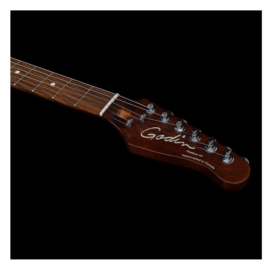 De Stadium HT Trans White is een solid body gitaar van Godin. De vorm is op de populaire Telecaster gebaseerd, echter is de Stadium wat ronder qua vorm. De gitaar heeft ook twee single-coil elementen, waarvan er één in het metaal van de brug zit. Het metaal zorgt dan voor een aparte resonantie en zorgt voor een prachtig twangy geluid. Het halselement is erg articulerend en zorgt voor een vintage klank. De hardware is van hoge kwaliteit. De zadels van de brug zijn zelfs van koper gemaakt, wat voor een warmer geluid zorgt.
