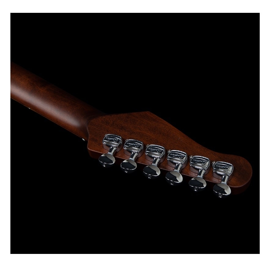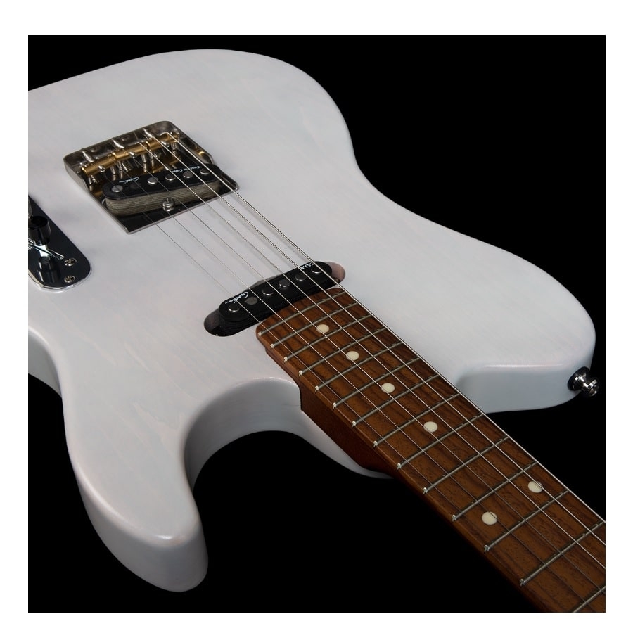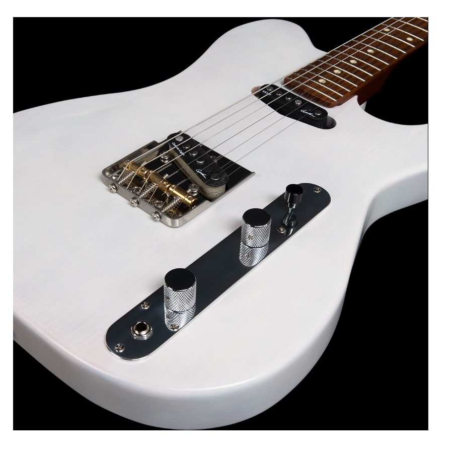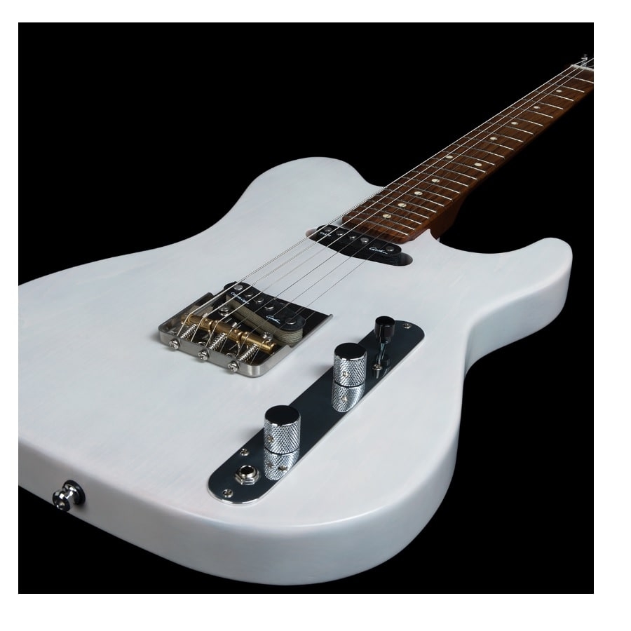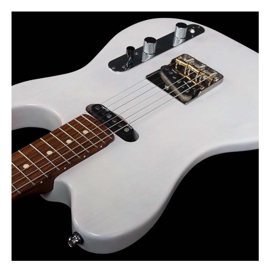 De body van de gitaar is van basswood gemaakt. Dit is een zachte houtsoort met een fijne sustain. De hals is van esdoornhout gemaakt en de toets van palissander, wat voor een goede articulatie zorgt. Het is ook opvallend dat de gitaar geen slagplaat heeft, niet aan de voorkant en niet aan de achterkant. Godin heeft alle bedrading weten te verstoppen onder de brug en het schakelpaneel, waardoor de gitaar een professionele en luxueuze uitstraling heeft. Kortom, de Stadium HT Trans White is een fantastische gitaar met een goede prijs/kwaliteitverhouding!