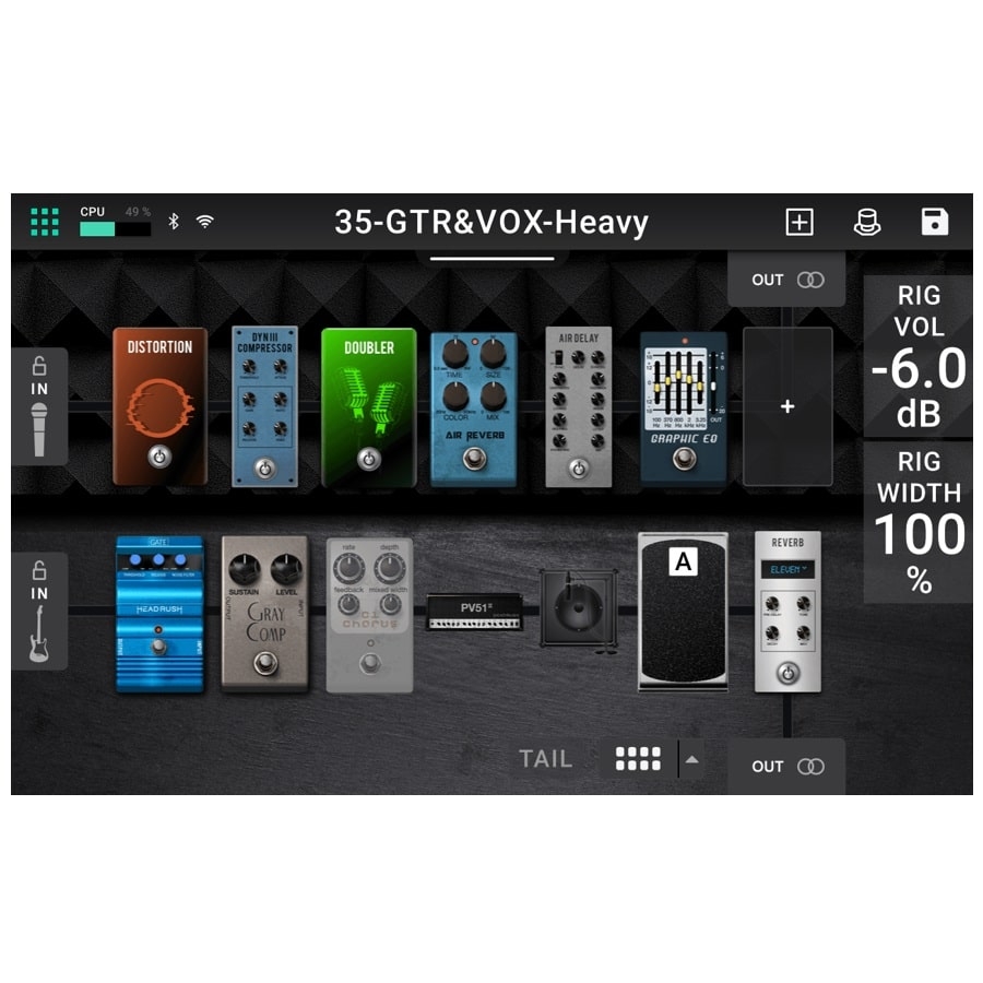 Een belangrijk aspect aan de Prime is dat deze een Wi-Fi connectie heeft. Op deze manier bent u rechtstreeks verbonden met de HeadRush Cloud waarmee u toegang heeft tot de clones en presets van andere muzikanten, deze zelf uploaden en heeft u direct toegang tot firmware updates. Via de Wi-Fi of de Bluetooth kunt u ook muziek streamen. Echter komt het systeem al met een grote bibliotheek aan geluiden en effecten waardoor u eigenlijk al meer dan genoeg keuze hebt. U kunt ook uw eigen presets maken en deze opslaan. Via het intuïtieve gebruikersinterface kunt u makkelijk uw presets weer opzoeken. Wilt u uw geluid opnemen? Geen probleem. Het systeem heeft namelijk een USB-aansluiting waarmee u deze direct op uw DAW kan aansluiten.