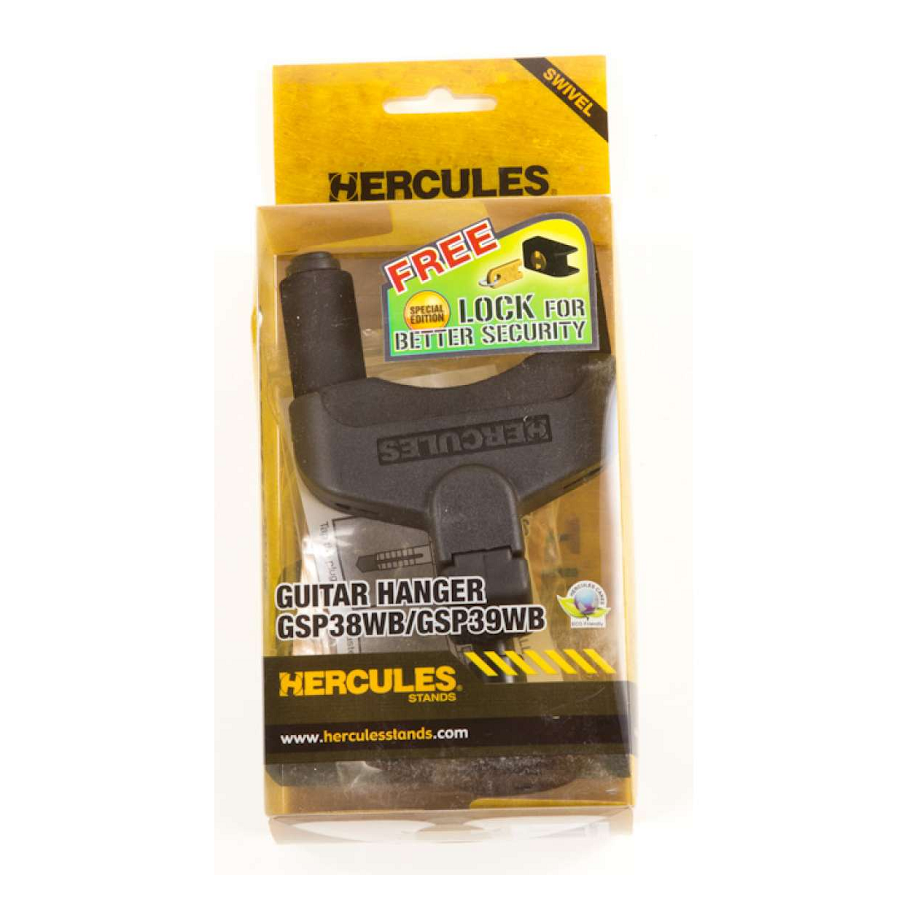 De Hercules GSP39WB is een gitaarhaak die de ultieme bescherming biedt. Naast de veilige sluitingen zorgt het Specially Formulated Foam ervoor dat geen enkele laksoort aangetast kan worden. De beugel kan een gewicht aan van maximaal 7 kilo. De basis van de haak bestaat uit een metalen plaat.