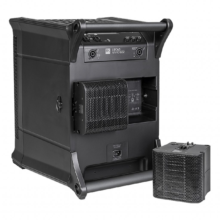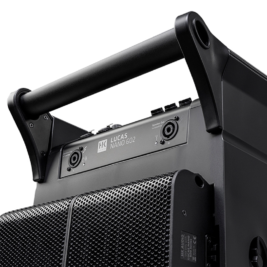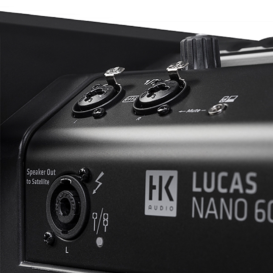 De Lucas Nano 602 is een professionele PA-installatie van HK Audio. Deze set is onderdeel van de Lucas Nano serie. Binnen deze serie heeft HK Audio geprobeerd om de ultieme veelzijdige speakers op de markt te brengen. De set-up van deze speakers is simpel en duidelijk. Deze speakers zijn daarom compact en overal bruikbaar. Het is de ideale speakerset voor een muzikant of DJ die zijn eigen externe mengplaat wilt gebruiken, maar is ook zeer geschikt voor praataudio, zoals speeches of films. Bovendien heeft de set een groot bereik met een vermogen van 460 watt, waardoor deze gebruikt kan worden bij een publiek van 120 man. Het is een 2.1 stereosysteem en kan gecombineerd worden met bepaalde andere speakers van HK Audio. De speaker heeft een actieve 10 inch subwoofer die prachtige en duidelijke bastonen produceert. Daarbij worden twee 4.5 inch luidsprekers, ‘satallieten’, meegeleverd. Het balans van de satellieten is instelbaar. De set heeft twee stereo inputs waarmee u makkelijk een instrument, apparaat of mengpaneel op de set aansluit, via een XLR-aansluiting of een ¼ jack. De set weegt maar 16,3 kilo, waardoor vervoer redelijk makkelijk is. Bovendien is de set compact, waardoor deze niet veel ruimte inneemt, en kunnen de satellieten opgeborgen worden in de speaker. Statieven voor de satellieten en de speaker zijn apart verkrijgbaar.