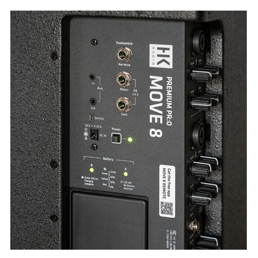 De Premium Pro Move 8 is een handige portable speaker van HK Audio. HK Audio is een Duits bedrijf wat bekend staat om hun professionele audioproducten. Voornamelijk hun compacte PA-systemen zijn erg populair. De Move 8 is een handige multifunctionele luidspreker. De luidspreker is geschikt voor muziek, zo kunt u er instrumenten en microfoons op aansluiten, maar ook voor speeches, presentaties en andere vormen van entertainment. Het is dus een erg veelzijdige speaker, maar ook handig qua gebruik en vervoer. Ten eerste is de speaker erg compact met een afmeting van minder dan 30 centimeter en een gewicht van 8,5 kilo. Zodoende is vervoer redelijk simpel en hoeft u niet met zware apparatuur te sjouwen. Daarnaast werkt de speaker op batterijen. De Move 8 wordt geleverd met twee oplaadbare batterijen, waardoor u niet afhankelijk bent van een stopcontact.