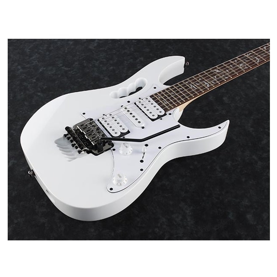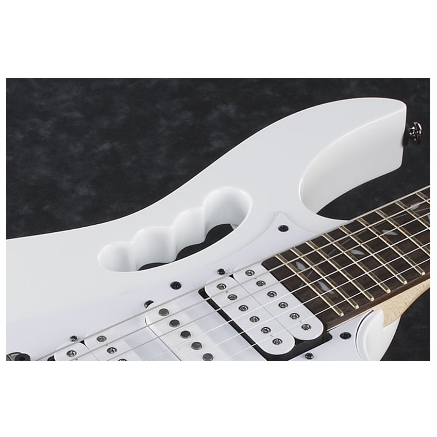 De JEMJR is een opvallende gitaar van Ibanez. Ibanez is een Japans gitaarmerk dat al jaren elektrische gitaren ontwikkeld. Ze staan bekend om hun hoge kwaliteit gitaren voor relatief lage prijzen. Bovendien zijn de gitaren van goede materialen gemaakt. De JEMJR heeft een meranti body wat voor een gebalanceerd geluid zorgt. Verder heeft de gitaar een esdoornhouten hals en een jatoba toets. Deze combinatie zorgt voor een fijn speeloppervlak en een mooi geluid. Daarnaast heeft de gitaar een single coil element en twee humbucker elementen. De humbucker elementen kunnen ook gesplitst worden waardoor u vijf verschillende elementcombinaties kunt maken. Dat maakt de gitaar ook erg veelzijdig, waardoor deze geschikt is voor zowel beginnende als gevorderde gitaristen. Zo kunt u vele genres spelen en zorgen dat het alsnog perfect klinkt, dan is het spel onafhankelijk van welke gitaar u heeft. Kortom, een schitterende gitaar voor een prachtig prijsje!