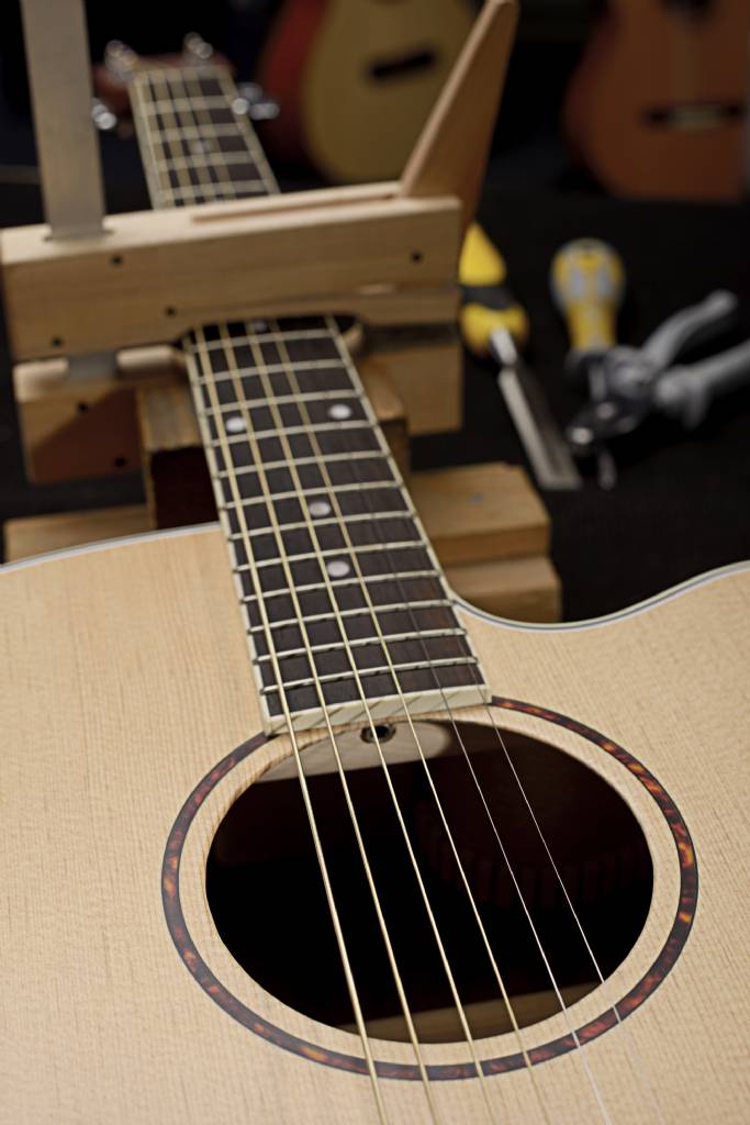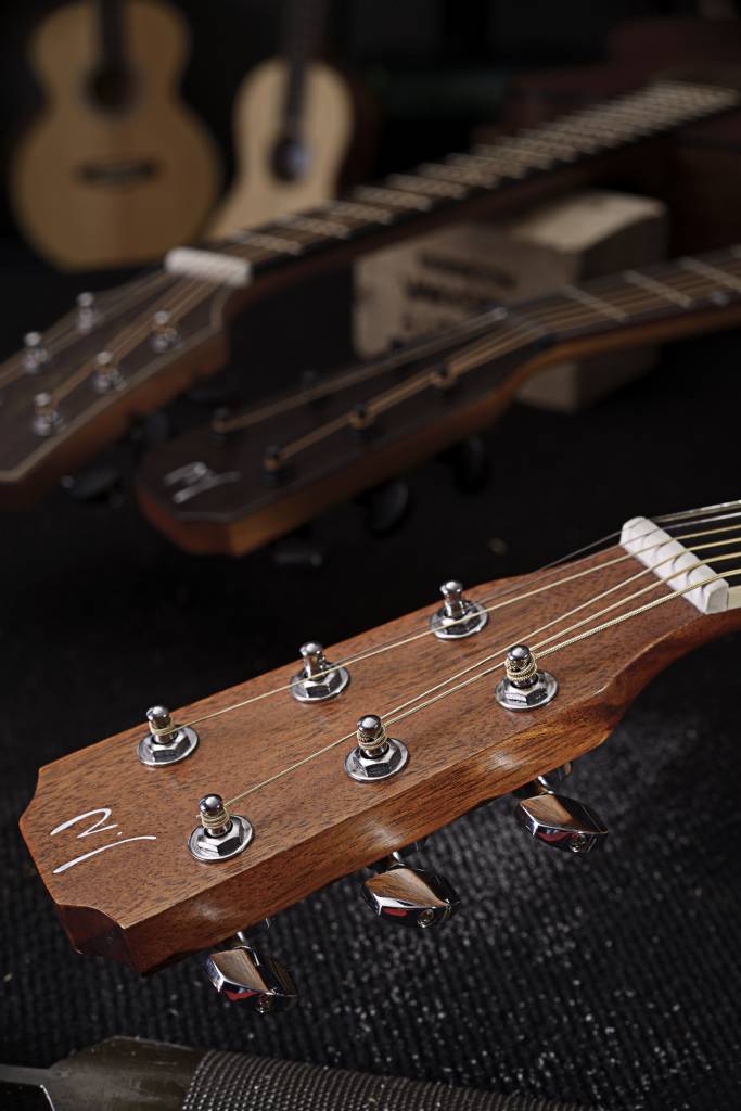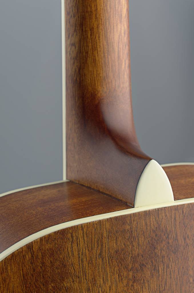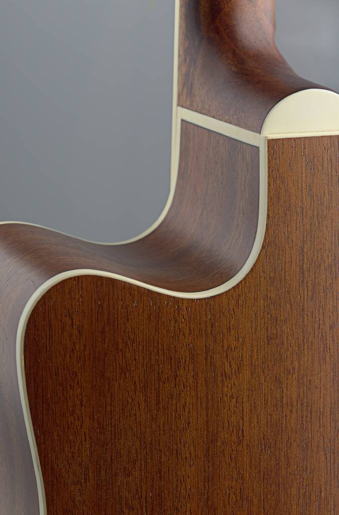 Een belangrijke eigenschap van de gitaar is dat deze een massief sparren bovenblad heeft. Een massief bovenblad heeft over het algemeen een warmere en vollere klank als een gelamineerd bovenblad. Het zij- en achterblad van de gitaar is van mahonie. De gitaar is afgewerkt met een open-pore vernis lak. Deze matte lak zorgt ervoor dat de gitaar een erg natuurlijk design heeft. De hals is van mahoniehout gemaakt en de toets is van palissander gemaakt, de toets bevat inlays in de vorm van stipppen. De gitaar wordt uit de fabriek geleverd met de kwalitatieve EXP snaren van D’Addario.