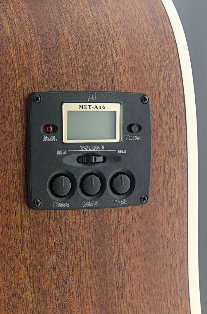 De James Neligan ASY-DCE is een semi-akoestische westerngitaar uit de Asyla-serie. Deze serie gitaren biedt elke muzikant de kans om tegen een aantrekkelijke prijs te spelen op een professioneel instrument. Het uiterlijk van de gitaar is bewust neutraal en natuurlijk gehouden, het is dan ook de bedoeling dat de gitaar natuurlijk aanvoelt als deze wordt opgepakt. James Neligan heeft dit willen bewerkstelligen door de open-pore finish. Door deze finish staat er niets tussen jou en de massieve top van de gitaar. Het geluid is net zo zuiver als het uiterlijk van de gitaar en dit maakt het mogelijk om te genieten van het instrument, van de muziek en van het gitaarspel.