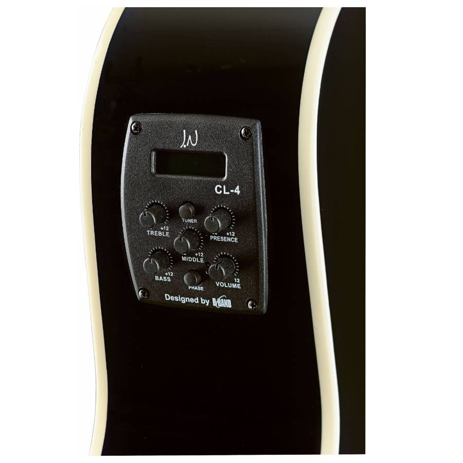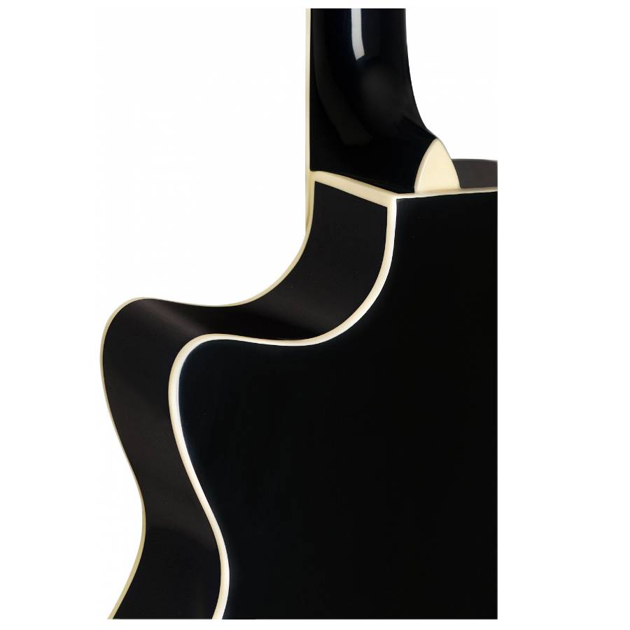 Een zwarte gitaar is net iets opvallender dan een traditionele houtkleurige gitaar en vele gitaristen vinden dit dan ook erg gaaf. De James Neligan BES-ACE-BK voldoet aan dit criteria, de zwarte semi-akoestische westerngitaar heeft een fraaie en populaire uitstraling. Deze gitaar is onderdeel van de begin 2017 geïntroduceerde Bessie-serie, een serie betaalbare gitaren die zijn voorzien van elektronica. Een populaire uitstraling, kwalitatieve materialen en een fijn klankkarakter zijn de voornaamste eigenschappen van deze gitaar. Om de serie voor zoveel mogelijk gitaristen interessant te maken, is deze gitaar ook leverbaar in een naturel uitvoering, in een rode uitvoering en in een blauwe uitvoering.