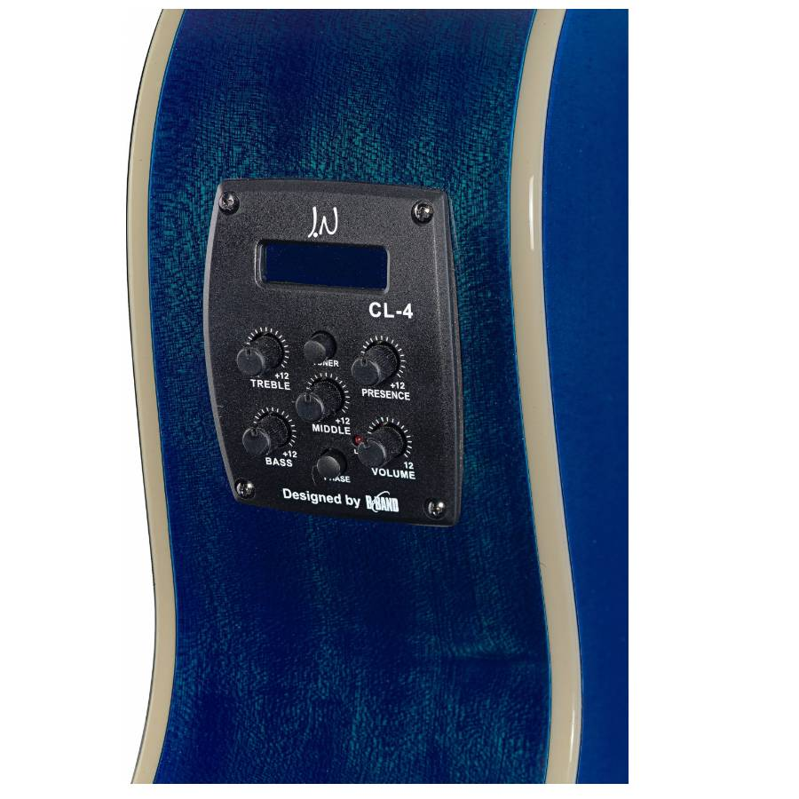 Altijd al gedroomd van een blauwe semi-akoestische westerngitaar? Met de James Neligan BES-ACE-TBB is er nu een betaalbare gitaar op de markt gekomen met een fraaie en populaire uitstraling. De blauwe afwerking zorgt voor een vrolijk en gezellig uiterlijk. Mocht u toch niet houden van blauw? De gitaar is er ook in het houtkleurig, zwart en rood. Kwalitatieve materialen en een ingebouwd element zorgen voor een goede gitaar die gebruikt kan worden bij liveoptredens en studiosessies maar ook prima fungeert als studiegitaar.