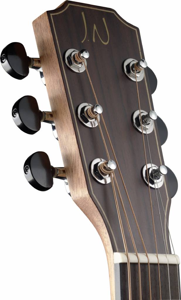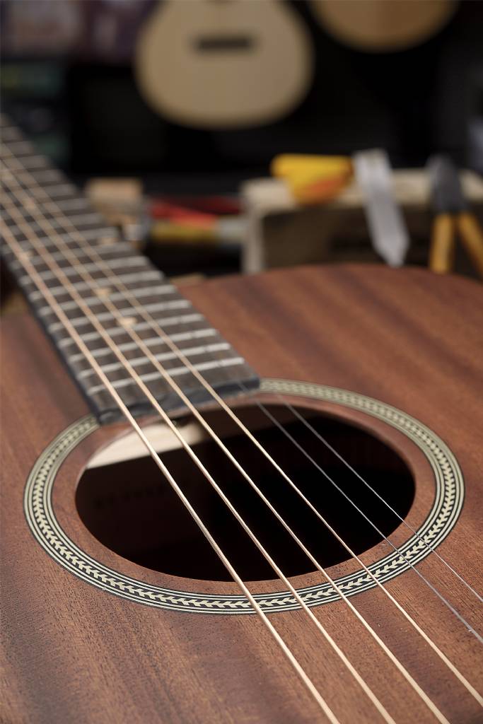 Een belangrijke eigenschap van de gitaar is dat deze een massief mahonie bovenblad heeft. Een massief bovenblad heeft over het algemeen een warmere en vollere klank als een gelamineerd bovenblad. Het zij- en achterblad van de gitaar is tevens van mahonie. De gitaar is afgewerkt met een satin lak. De hals is van mahonie en de toets is van palissander, de toets bevat inlays in de vorm van stipppen. De gitaar wordt uit de fabriek geleverd met de kwalitatieve EXP snaren van D’Addario.