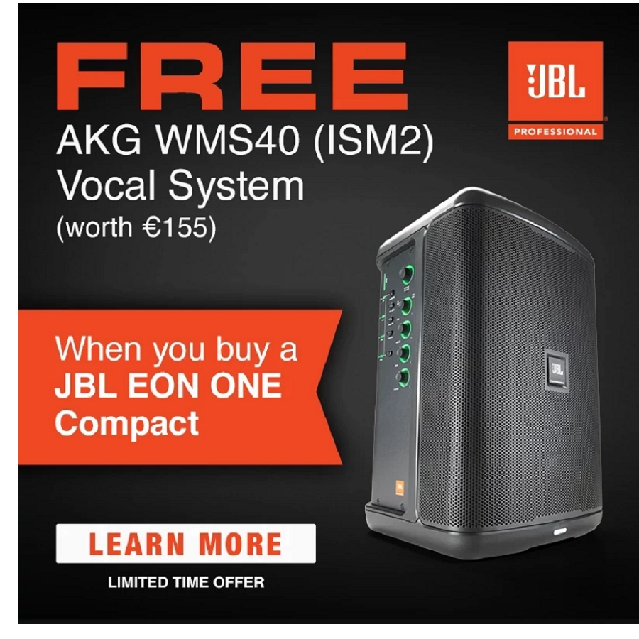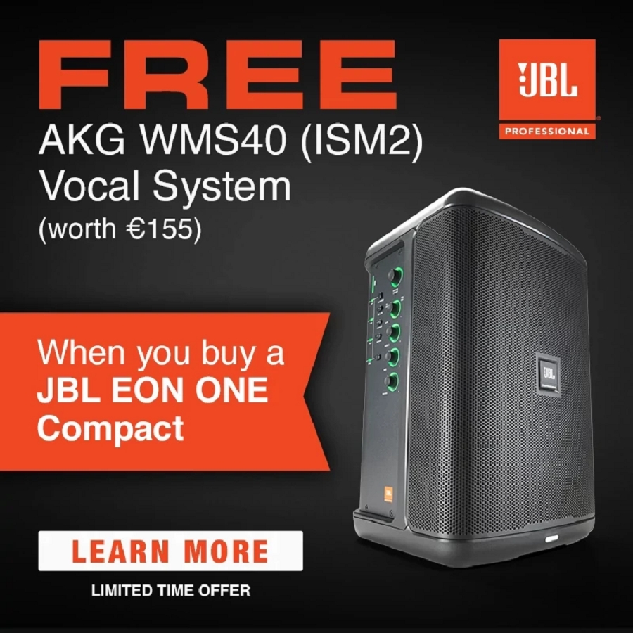 Bij aankoop van een JBL Eon One Compact profiteert u van een gratis AKG WMS40 t.w.v. € 115,00. Hoe werkt het? Na aankoop van de JBL Eon One Pro bij ons in de winkel of via onze website kunt u zichzelf registeren bij JBL en vervolgens het gratis instrument claimen. Dit doe je via: JBL Claim je product. Na de productclaim wordt het product door JBL naar je thuis gestuurd.