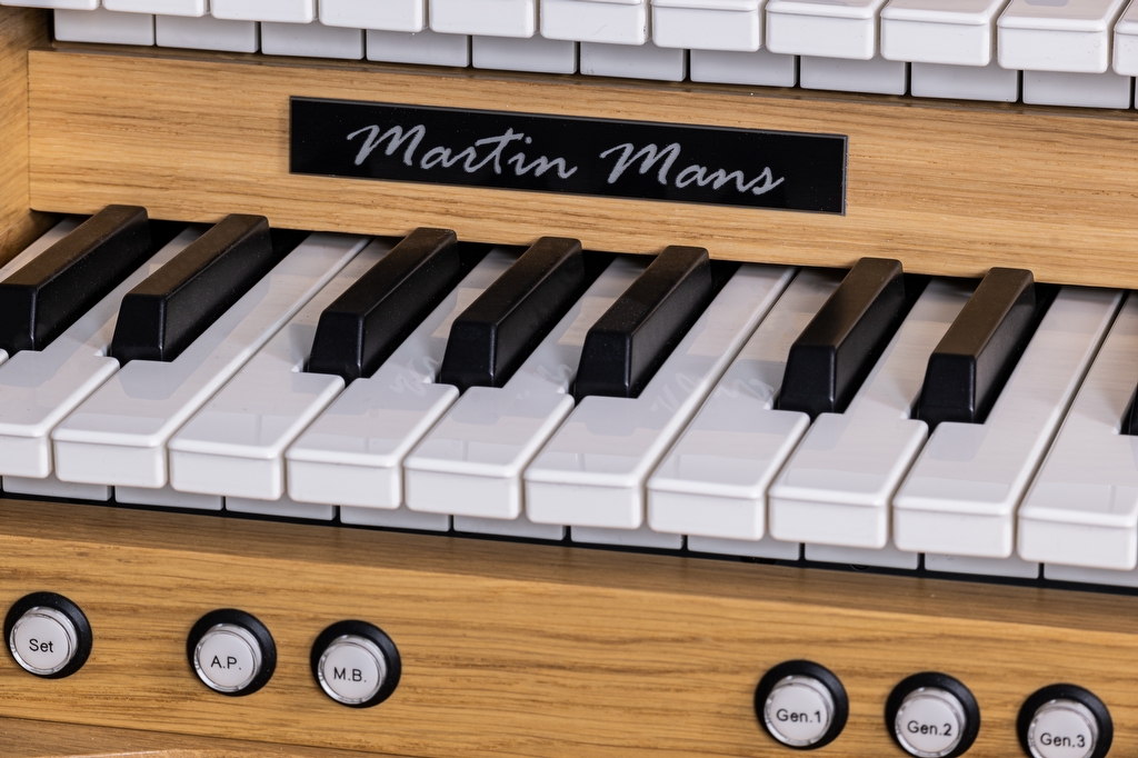 “Met Joh.deHeer heb ik een jarenlange samenwerking. Samen zijn we altijd op zoek naar een nog betere kwaliteit; zowel muzikaal als klank-technisch. Daardoor ontstond het idee om een nieuw orgel te bouwen. Uniek qua klank en dispositie. Maar ook bijzonder qua vormgeving. Zo ontstond het Johannes de Heer-orgel, type ‘Martin Mans’. Een orgel met een complete dispositie, waar zowel de literatuur als mijn improvisaties prachtig op klinken. Een intonatie met een romantische inslag. Zwevende strijkers, warme fluiten, stevige prestanten en een karaktervolle aanvulling in vulstemmen en tongwerken. Wij, Joh.deHeer en ik, zijn trots op dit nieuwe paradepaard op orgelgebied! Het is onze wens dat dit unieke instrument mag klinken in veel huiskamers en (kerk)zalen. Ik wens u daarbij veel speel- en luisterplezier!”