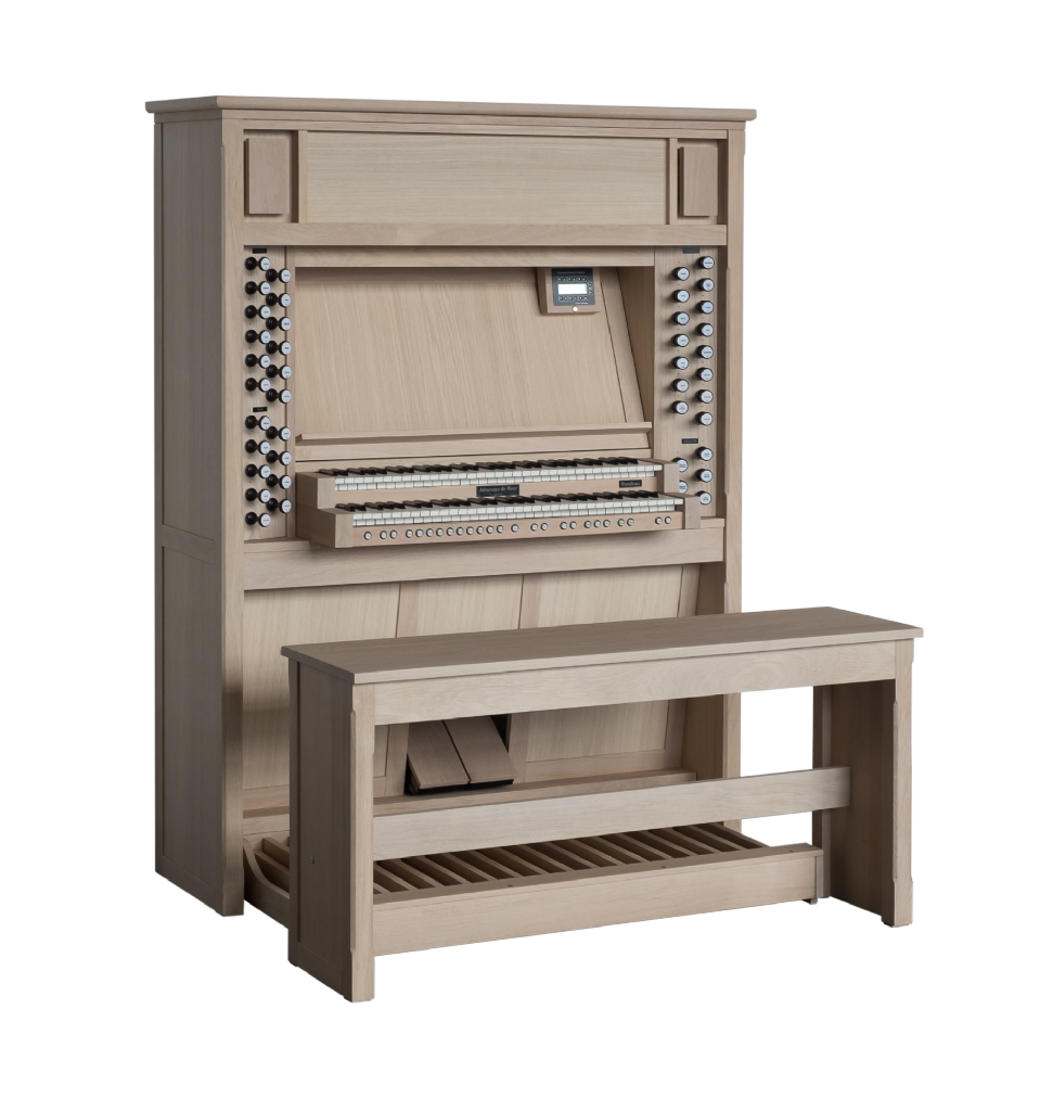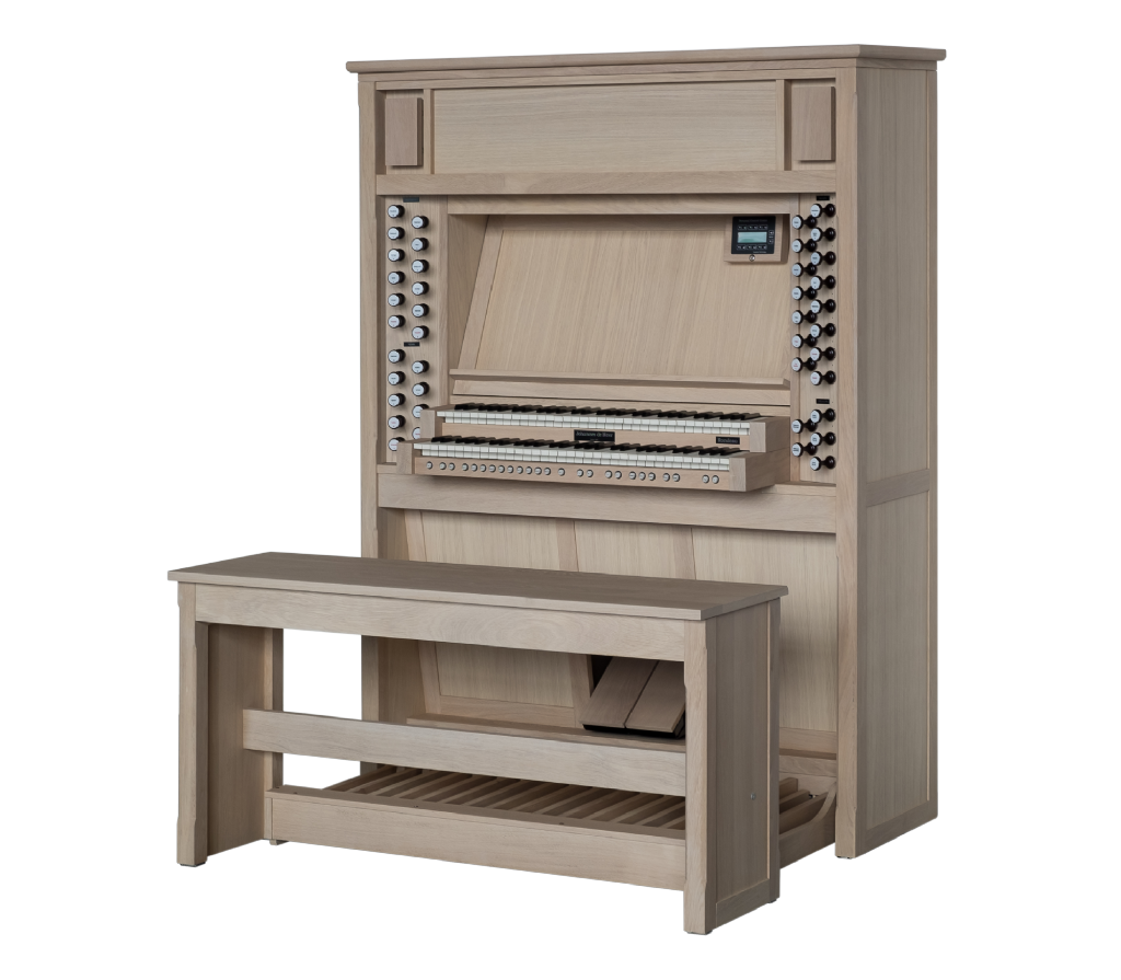 Het cabinetorgel heeft een magistrale uitstraling. Het fraaie en degelijk meubel is geheel massief en voorzien van een prachtige sierlijst. Eigenschappen zoals verlichting en houten zwelpedalen zorgen voor een chique uitstraling. De houtentrekregisters zijn voorzien van een Led-lampje achter het register. Deze lampjes tonen aan welke presets zijn ingeschakeld.