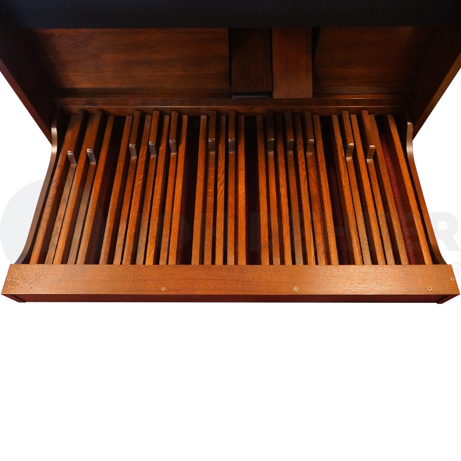 Dit orgel is deelbaar, waardoor het in twee delen gesplit kan worden. Ideaal voor plaatsing via trap op een hogere verdieping.