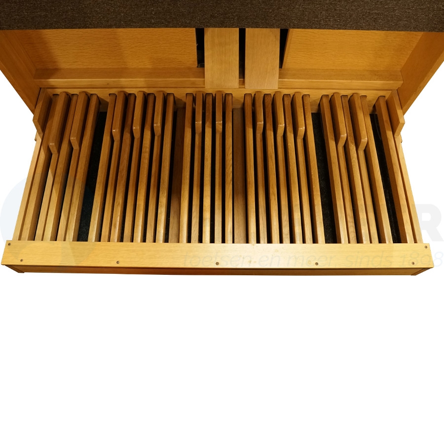 De Johannus Opus 15 heeft 29 heldere stemmen, en geeft een prachtige, warme klank door het grote aantal speakers die in het klassemeubel gebouwd zijn. Dit orgel heeft bovendien een afsluitbaar houten roldeksel. Het meubel straalt klasse uit en is al lange tijd beeldbepalend voor Johannus. Met maar liefst twaalf geïntegreerde intonaties is dit orgel echt zeer compleet te noemen. Het orgel verkeert in zeer nette staat, en vertoont geen grote beschadigingen of mankementen. Het wordt uiteraard geleverd met het geweldig handige en geruststellende Joh.deHeer Orgel Luxury Pakket! Scroll voor meer info...