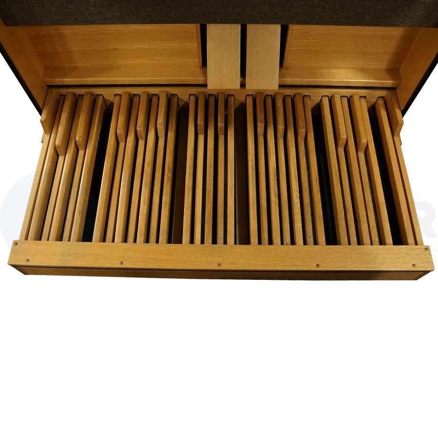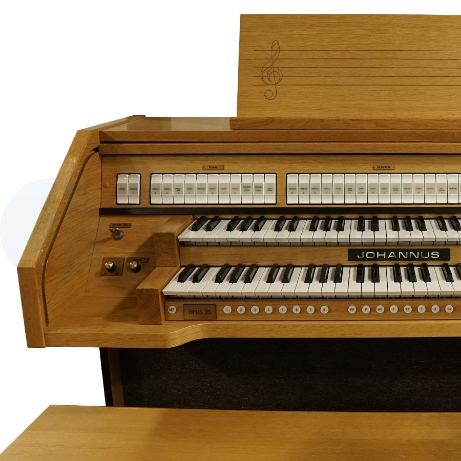 De Johannus Opus 25 - KJM editie is een prachtig digitaal orgel in een mooi blank eiken meubel en vormt als het ware de iets grotere broer van de Johannus Opus 15. Dit model van robuuste kwaliteit beschikt over 30-tonig pedaal en een uitgebreide dispositie met wel 36 stemmen! Het orgel is afkomstig van de bekende Nederlandse orgelbouwer Johannus en beschikt dan ook over de bekende, warme en heldere klank zoals we die van een topmerk als deze gewend zijn. Het mooie blank eiken meubel verkeert in een - voor een occasion - ongekend nette staat. Het fraaie meubel is grotendeels gebouwd uit degelijk, massief hout en beschikt over mooie, tevens houten zwelpedalen.