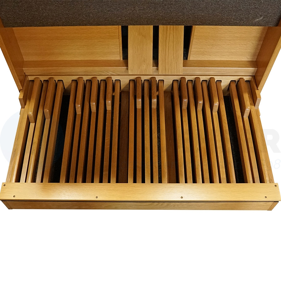 De Johannus Opus 5-27 is een leuk digitaal orgel voor de hobbymatige organist die toch zoekt naar kwaliteit. Speelt u graag psalmen en gezangen? Daarvoor is dit compacte model van het gerenommeerde Johannus uitermate geschikt. Een aangename dispositie in zowel barok als romantische stijl bieden verschillende kleurmogelijkheden. Het orgel is voorzien van een 27-tonig baspedaal waardoor dit één van de compactere modellen is. Het nette blank eiken meubel geeft het orgel een eigentijdse uitstraling en past in vrijwel ieder interieur.