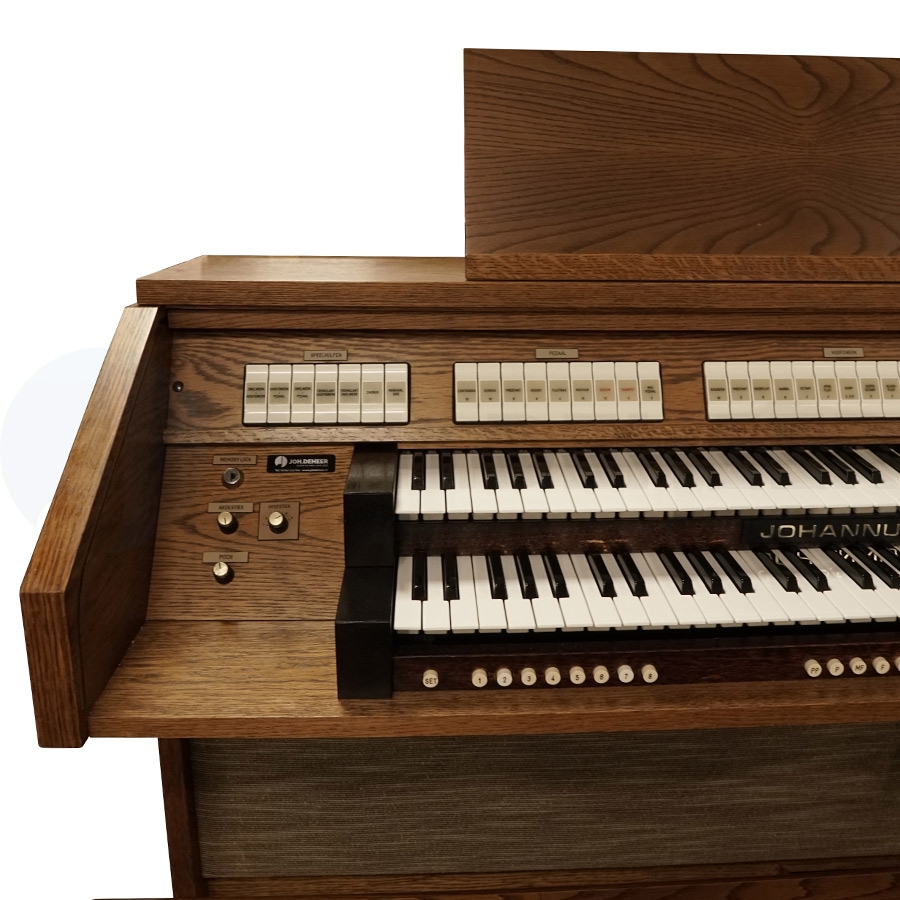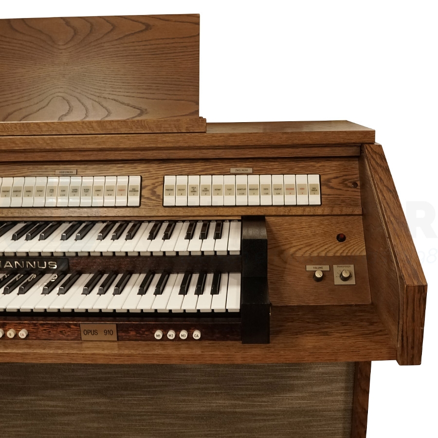 Het Opus 910 orgel in van Johannus heeft 2 klavieren met 5 octaven en een 30-tonig pedaal. U heeft keuze uit 32 gesampelde digitale stemmen die met verlichte registerknoppen zijn te kiezen. Beide manualen en het pedaal zijn volledig te koppelen. Elke toets heeft per register een zeer natuurgetrouw klinkend aanblaas effect, zoals dat ook bij een orgineel pijporgel te horen is. Het versterkersysteem van de Johannus Opus 910 bestaat uit vier versterkers met een totaal vermogen van 160 Watt waarmee 6 luidsprekers worden aangestuurd.