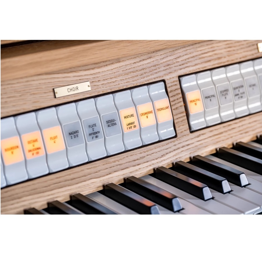 Het vertrouwde Opus geluid ook voor in de kerk of in een kapel? Dat kan met de Johannus Opus Choir 360! Dit nieuwe model binnen de Opus Familie is uitgevoerd met drie klavieren en 43 registers. De Opus Choir modellen zijn speciaal gebouwd om zang te begeleiden in kleinere ruimtes tot ongeveer 150 personen. Door gebruik van samples van authentieke pijporgels wordt de gehele ruimte in beroering gebracht. Het meubel van de Opus Choir is standaard voorzien van een roldeksel zodat het orgel netjes kan worden afgesloten als deze niet in gebruik is en de kleur is aanpasbaar zodat het orgel naadloos opgaat in de stijl van de ruimte.