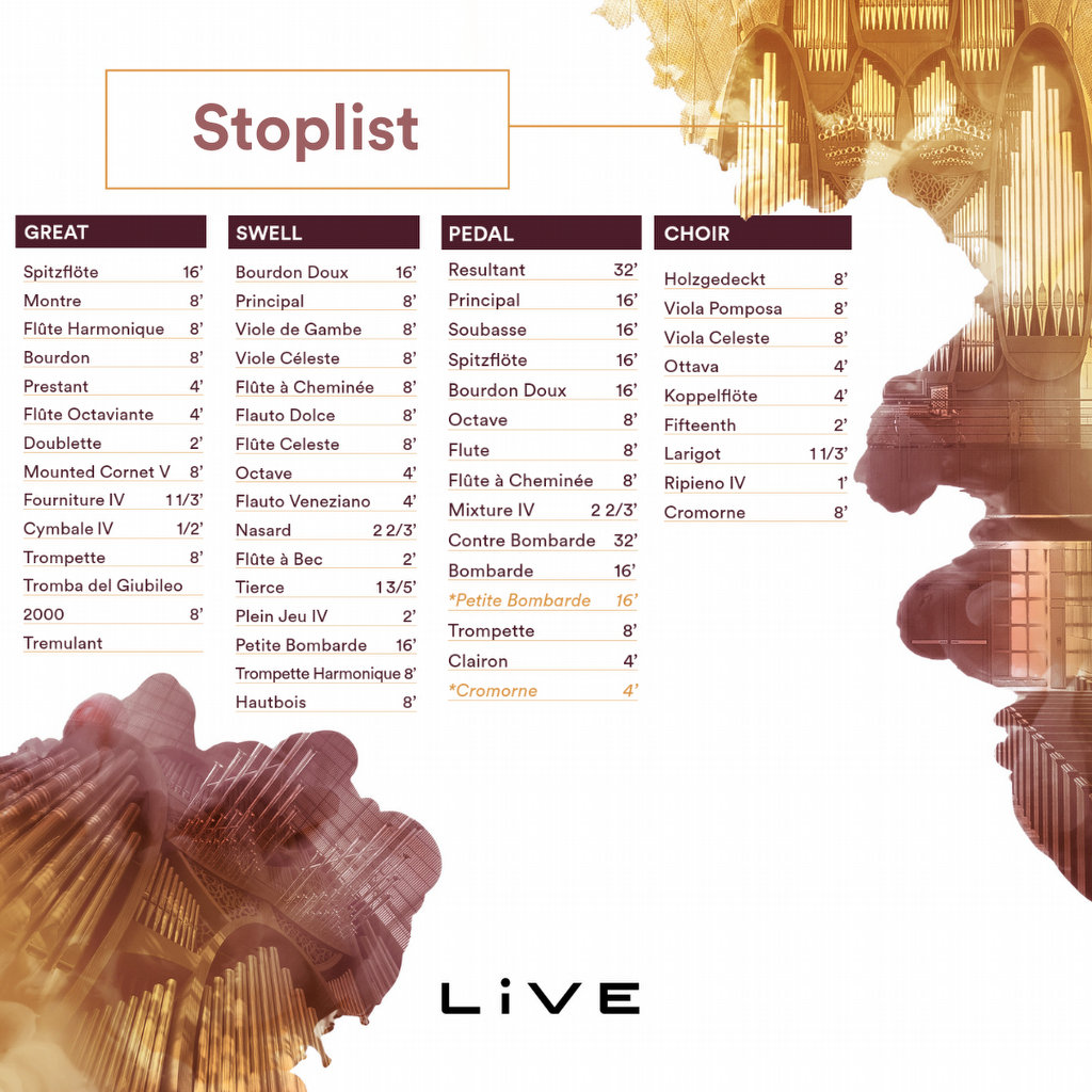 Naast het unieke ontwerp van het orgel is ook de klank zeer indrukwekkend. Het orgel bevat in totaal 3.472 pijpen, verdeeld over 61 stemmen en 41 registers, geïnspireerd op de pijporgelbouwtraditie van gerenommeerde Europese bouwers. Het resultaat is een grote diversiteit aan klanken, die toch heel harmonieus samensmelten en voor een prachtig geheel zorgen.