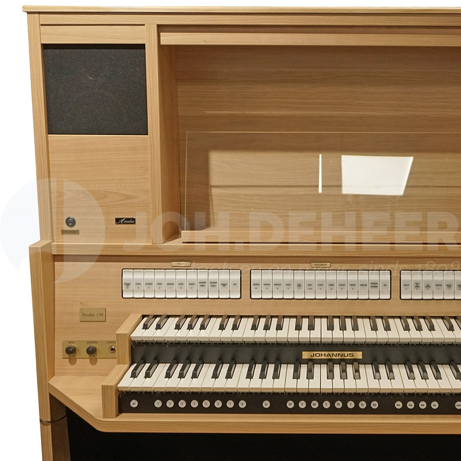 Het klassieke Johannus Studio 150 orgel behoort tot één van de meest toegankelijke modellen van een zeer gewaardeerde en gerenommeerde orgelbouwer. Voor een vriendelijke prijs biedt de Studio 150 een rijk palet aan mogelijkheden voor zowel de beginnende als de gevorderde organist. De kenmerkende Johannus klank, twee klavieren, een 30-tonig pedaal, vele variatie mogelijkheden in de klank en een hoogwaardig audiosysteem zijn een aantal eigenschappen die vele organisten als muziek in de oren zal klinken. Het meubel heeft een modern design met een frisse ‘Light Riverside’ afwerking. Met een bescheiden afmeting eist het orgel minimale ruimte, kortom ideaal voor plaatsing in uw huiskamer!