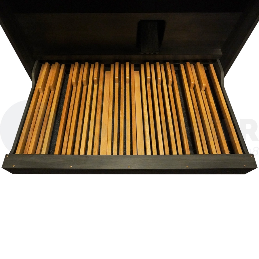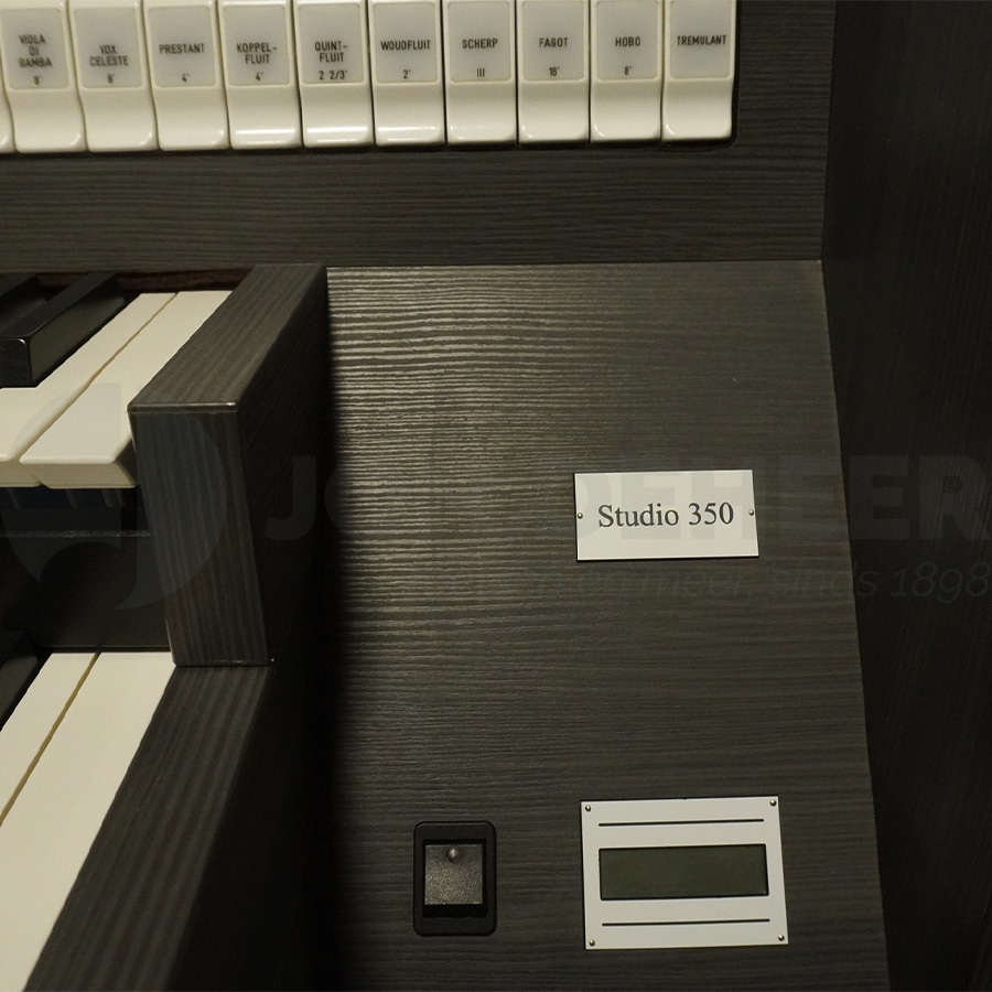 Het meubel van de Johannus Studio 350 is eigentijds ontworpen en past geheel in het huidige tijdperk van de klassieke orgels. Het fris ogende orgel is vormgegeven met een strak meubel en een moderne plexiglas lessenaar. Dit model is leverbaar in vier kleuren waarmee voor elk interieur wel een passende uitvoering beschikbaar is. Naast deze ‘Black North Wood’ is het orgel ook leverbaar in Nautilus Teak, Light Riverside en Wengé. Het meubel is ondanks de drie klavier zo compact mogelijk gebleven waardoor deze weinig ruimte in beslag neemt en met gerust hart kan worden geplaatst in de kleinere huiskamer.