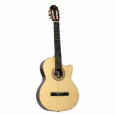 De 10F is een geweldige Flamenco gitaar van Juan Salvador. Dit is bijvoorbeeld te zien in de materialen waarmee de gitaar gemaakt is. De gitaar heeft een massieve sparrenhouten bovenblad en een cipressen zij- en achterkant. Dit is een fantastische combinatie wat voor een warm en articulerend geluid zorgt. Daarnaast heeft de gitaar een mahoniehouten hals en een ebbenhouten toets. Dit is een populaire combinatie want het zorgt voor een sterke en stevige hals, en dus goede stemvastheid, en een comfortabele speelervaring. Bovendien heeft de gitaar een prachtige houten rozet en een doorzichtige slagplaat wat voor een professionele uitstraling zorgt.