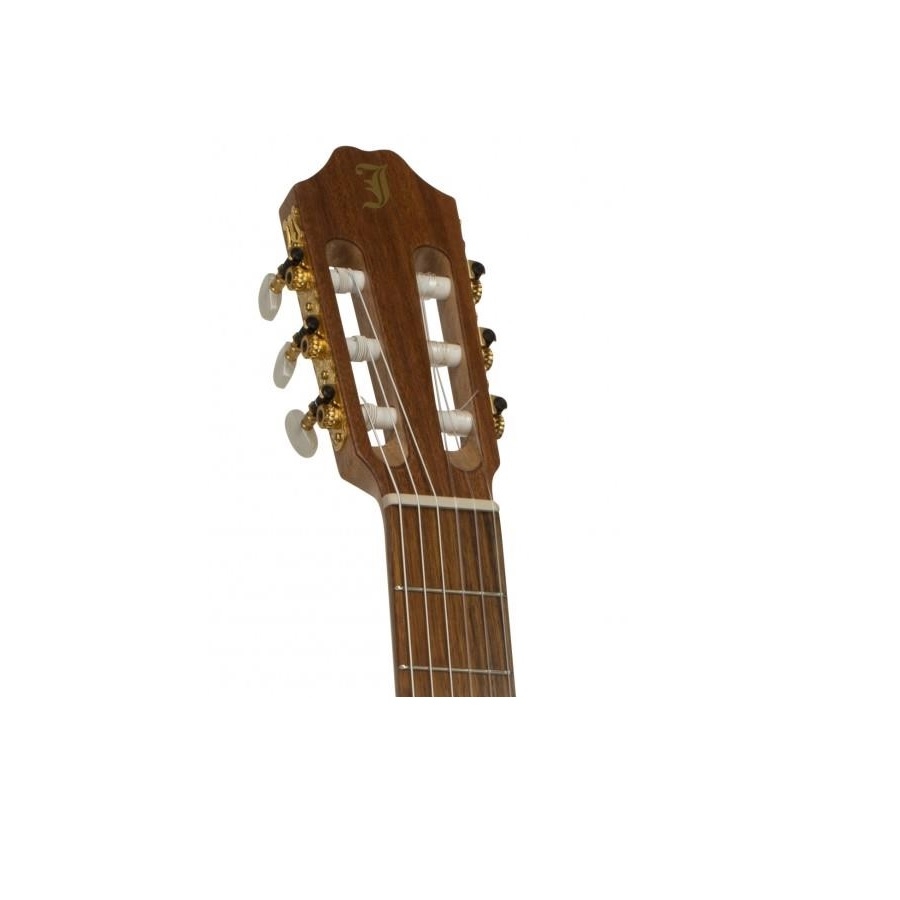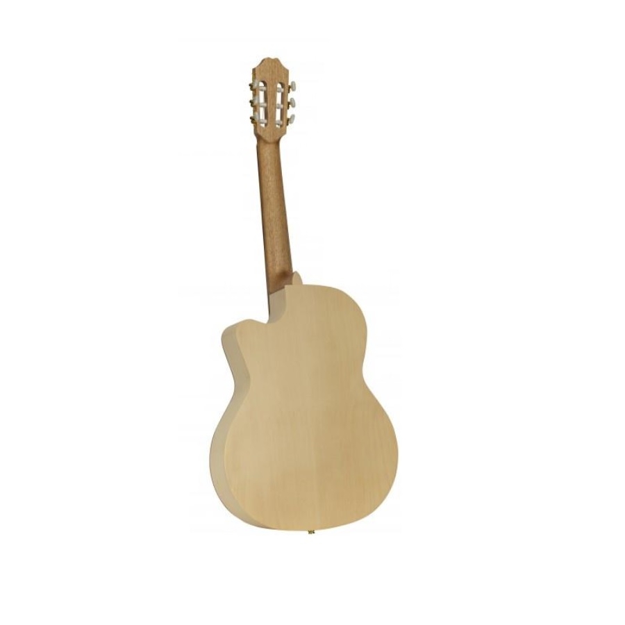 De 1CE is een semi-akoestische klassieke gitaar van Juan Salvador. Juan Salvador is een Europees bedrijf die handgemaakte klassieke gitaren produceert. Daarnaast heeft Juan Salvador zich gespecialiseerd in kwaliteit. Dit model is gemaakt van cederhout en beukenhout, dit gecombineerd met de nylon snaren zorgt voor een mooi en warm geluid. Dit model is semi-akoestisch, wat betekend dat deze gitaar te versterken is en daarom wordt geleverd met ingebouwde elektronica. De maat is 4/4, wat de grootste maat is voor klassieke gitaren. Hierdoor is dit model ideaal voor de volwassen gitarist. Echter is deze gitaar ook prima te gebruiken door kinderen. Bovendien heeft dit model een cut-out, wat ervoor zorgt dat de gitaar veelzijdiger is om te spelen en geeft de gitaar een modern uiterlijk. De natuurlijke kleur zorgt er daarnaast voor dat de gitaar een professionele en neutrale uitstraling heeft. Kortom, de ideale klassieke gitaar!