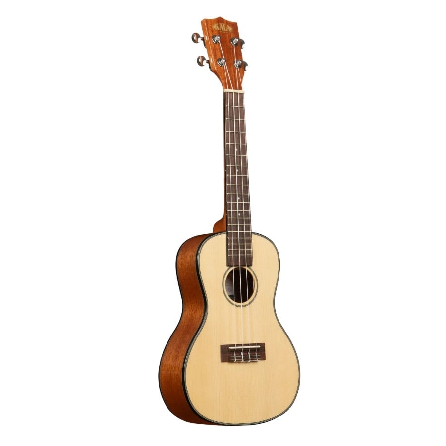 De KA-SCG is een geweldige concert ukelele van Kala, wat een Amerikaans bedrijf is. Ze produceren de ukeleles met de hand, deze ukeleles hebben ook een geweldige prijs/kwaliteitverhouding. Het bovenblad van de ukelele is van massief sparrenhout en de achter- en zijkant is van mahoniehout gemaakt. Deze combinatie zorgt voor een warm en krachtig geluid. Het is ook een erg stevige constructie waardoor de ukelele tegen een stootje kan. De toets is van palissander gemaakt. Dit wordt gezien als één van de beste toonhoutsoorten voor toetsen omdat het enorm stevig is en fijn aanvoelt. De KA-SCG is een concert ukelele. De concert ukelele is de populairste ukelele en heeft een gemiddelde grootte. Zodoende is deze ook geschikt voor mensen met grotere handen.