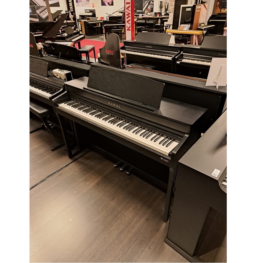 De Kawai CA-49 is het nieuwe instapmodel van de hoog aangeschreven CA-Serie. De ontwikkeling van het Japanse pianobedrijf Kawai staat niet stil en hun nieuwste, vernuftige en innovatieve verbeteringen hebben zij doorgevoerd in de nieuwe lijn piano’s. De CA-49 is de Benjamin van deze professionele serie en beschikt over een geheel nieuw moederboard ten opzichte van zijn voorganger. Dit moederboard is ontwikkelt in samenwerking met de eveneens Japanse hardware fabrikant Onkyo en leidt tot een significante betere tonale kwaliteit. Als u plaatsneemt achter de CA-49 zult u zich voelen alsof u achter een echte concertpiano zit. Uiteraard is de piano voorzien van het degelijke Kawai klavier en beschikt deze over de modernste features zoals een OLED display, Bluetooth Connectiviteit en vele opties op het gebied van toonregeling. Deze piano, die geschikt is voor de fanatieke starter tot aan ervaren hobbyisten en semiprofessionele spelers, is werkelijk een pracht. Niet alleen vanwege de geluidskwaliteit en bespeelbaarheid maar ook nog eens omdat deze piano een lust voor het oog is.