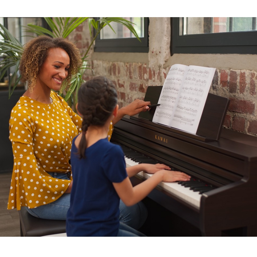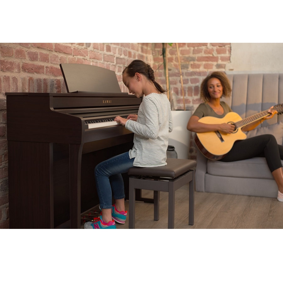 Naast dat deze piano veelvuldig door ervaren volwassen spelers gebruikt zal worden, is deze ook erg geschikt voor kinderen. Het klavier heeft namelijk een “Light Touch Curve” mogelijkheid waardoor deze lichter gaat spelen. Voor jonge kinderen die nog niet over voldoende kracht beschikken is dit een ideale uitkomst om in de jonge levensjaren ervaring als pianist op te doen. Als de functie is uitgeschakeld, voelt het klavier zeer degelijk aan en zullen zelfs kritische pianisten hier goed mee overweg kunnen. De toetsen bestaan volledig uit hout en dankzij meer dan 90 jaar ervaring lukt het Kawai om een klavier met een uitzonderlijke realistisch gevoel te maken. De witte toetsen zijn voorzien van een synthetisch ivoren bovenlaag. Het “Grand Feel Compact Klavier” heeft gegradueerde gewogen hamers, contragewichten in het basbereik en een drukpuntsimulatie. Daarnaast zorgt het drievoudige sensorsysteem voor optimale herhaling en spelcontrole.