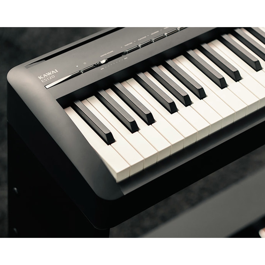 De Kawai ES-120 is een portable piano met veel high-end mogelijkheden voor een kleine prijs. Dit model volgt de populaire ES-110 op, die ook in onze webshop een ware hit was. Met een nieuw klavier, nieuwe klanken en nieuwe features is dit zeker een grote upgrade. Bent u op zoek naar een kwaliteit digitale piano waarmee u kunt beginnen, en optreden? Dan is de Kawai ES-120 een geweldige keuze!