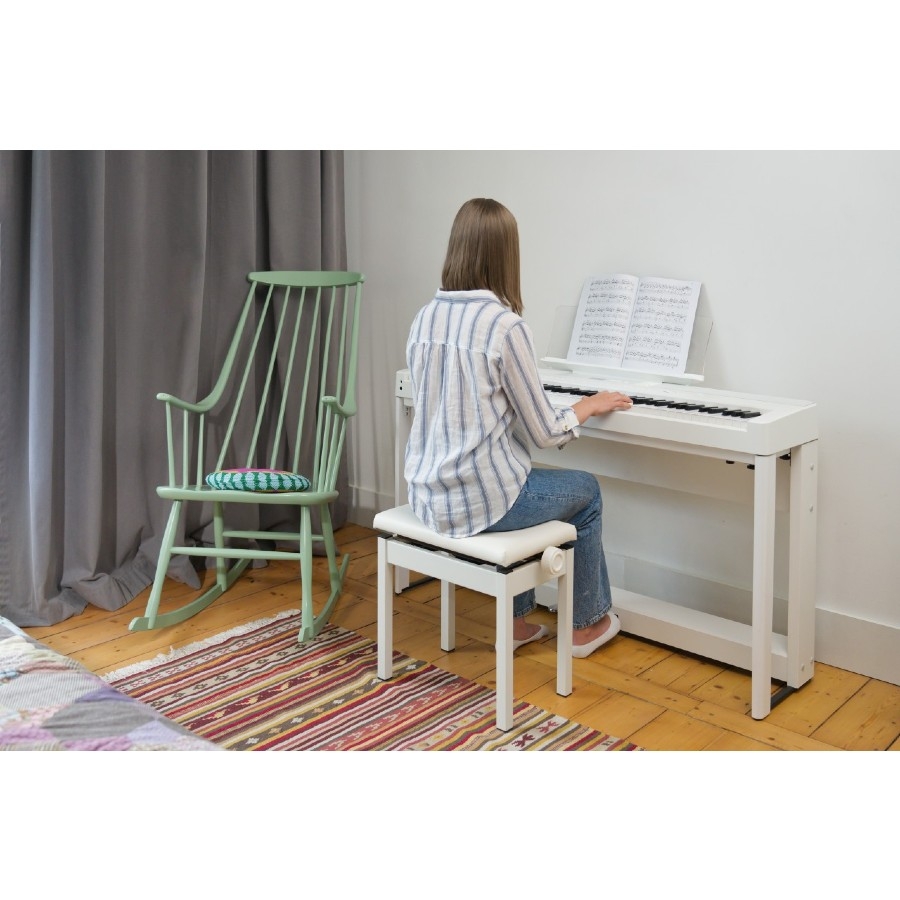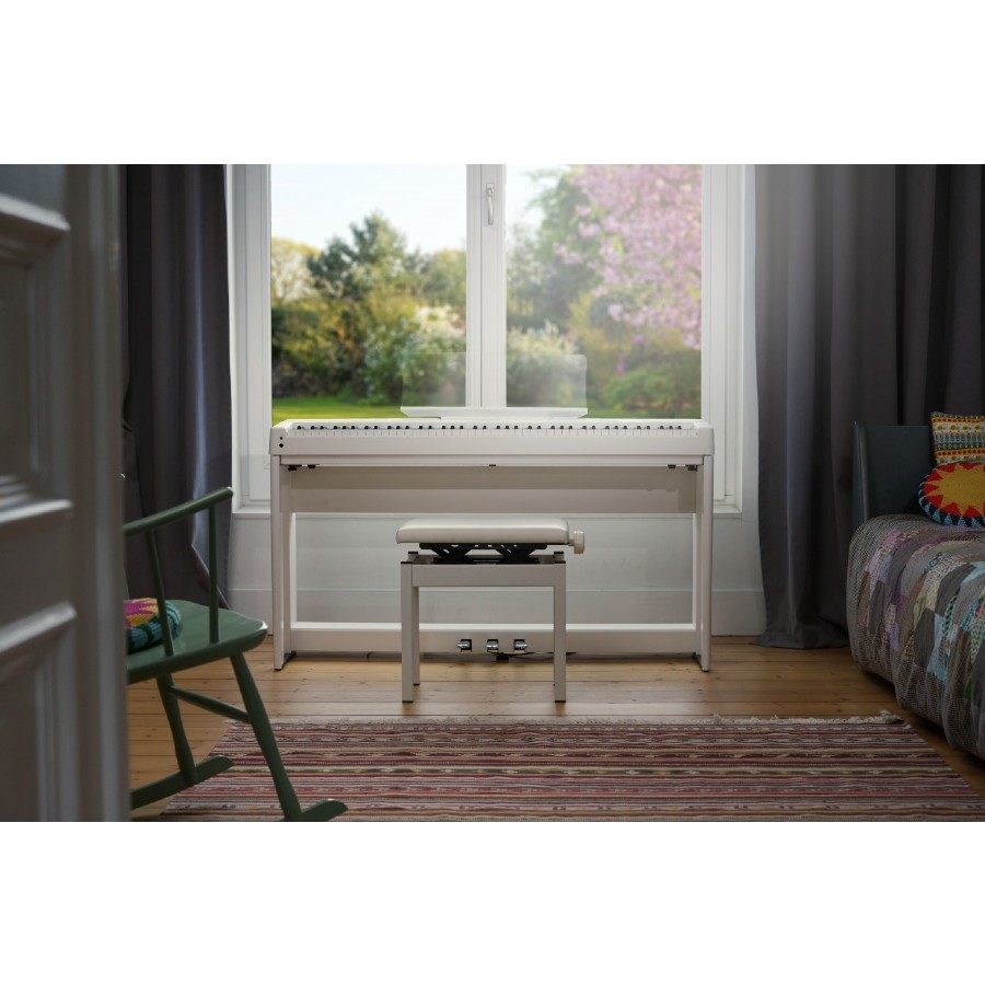 De piano heeft een Bluetooth en MIDI aansluiting, waardoor u andere apparaten op uw piano kunt aansluiten. Op deze manier kunt u makkelijk met achtergrondmuziek meespelen. Bovendien is het mogelijk om een hoofdtelefoon op de piano aan te sluiten. Kawai heeft ervoor gezorgd dat het hoofdtelefoongeluid net zo diep en ruim klinkt als de klank van de piano zelf, zodat u zelfs met een hoofdtelefoon de authentieke klank kan ervaren. De piano wordt met een pedaal geleverd. Kortom, een zeer goede digitale piano voor een fijne prijs!
