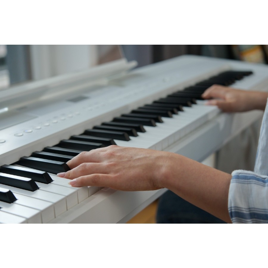De ES-520 is een kwalitatieve digitale piano van Kawai. De piano heeft 88 semi gewogen toetsen. Dit betekend dat de toetsen net zo aanvoelen als de toetsen van een akoestische piano. In een akoestische piano worden de snaren aangeslagen met een hamer, wat ervoor zorgt dat de toeten een bepaald gewicht hebben en zwaarder worden naarmate de toon lager wordt. Dit heeft Kawai nagebootst met het ‘Authentic Responsive Hammer Compact II’ systeem. Zodoende is het ook de ideale piano voor de pianist die akoestisch speelt of de pianist die zich wil opwerken naar akoestische piano’s. Bovendien hebben de toetsen een matte afwerking, waardoor deze niet glad zijn en erg fijn spelen.