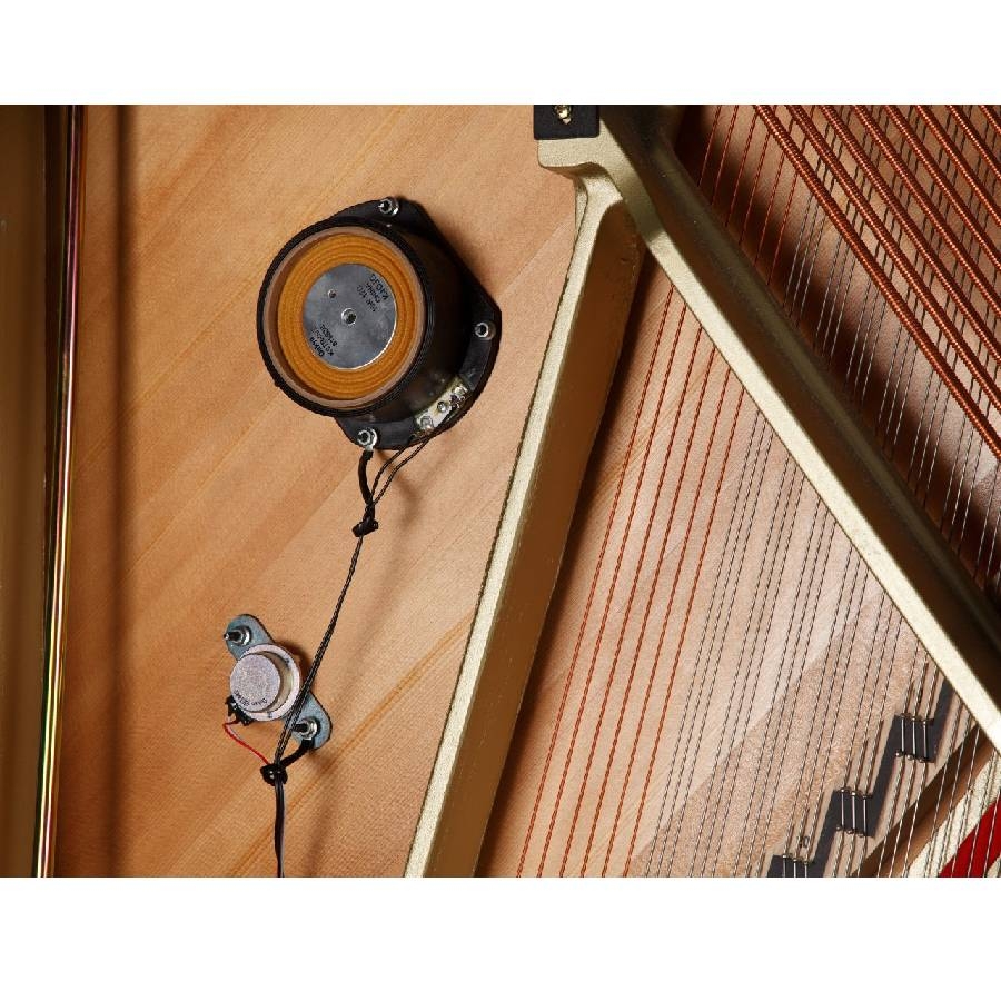 Links onder het klavier bevindt zich een kastje met daarop diverse aansluitingen. Zo kunt u hier twee hoofdtelefoons gelijktijdig aansluiten. Het is ook mogelijk om de piano middels Bluetooth aan te sluiten met uw smartphone of tablet. Zo kunt u muziek afspelen over het geluidssysteem van de piano of gebruik maken van muziek gerelateerde apps. Via de USB aansluiting is het mogelijk om de piano met de computer te verbinden en zo midi gegevens uit te wisselen. Ook een USB-Stick kan worden ingeprikt om songs direct op het instrument af te spelen of uw eigen spel in MP3 of WAV-formaat op te slaan.