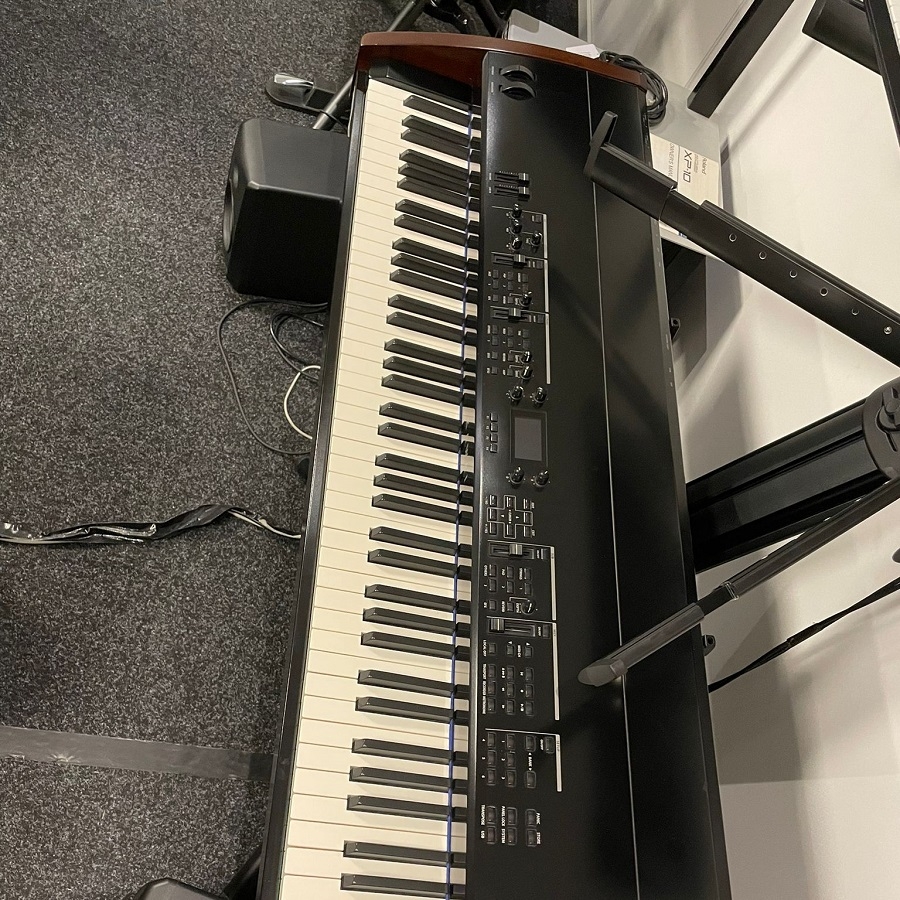 - Aansluitingen: XLR Outs met Ground Lift, Line Out 6,3mm (L/mono,R of 2x mono), Line In 6,3mm (L/mono,R), koptelefoonbus, demper/soft pedaal, voetschakelaar (toewijsbaar), Expression (toewijsbaar), MIDI In / Out / Thru, USB-to-host, USB-to-device, netaansluiting, netschakelaar aan/uit