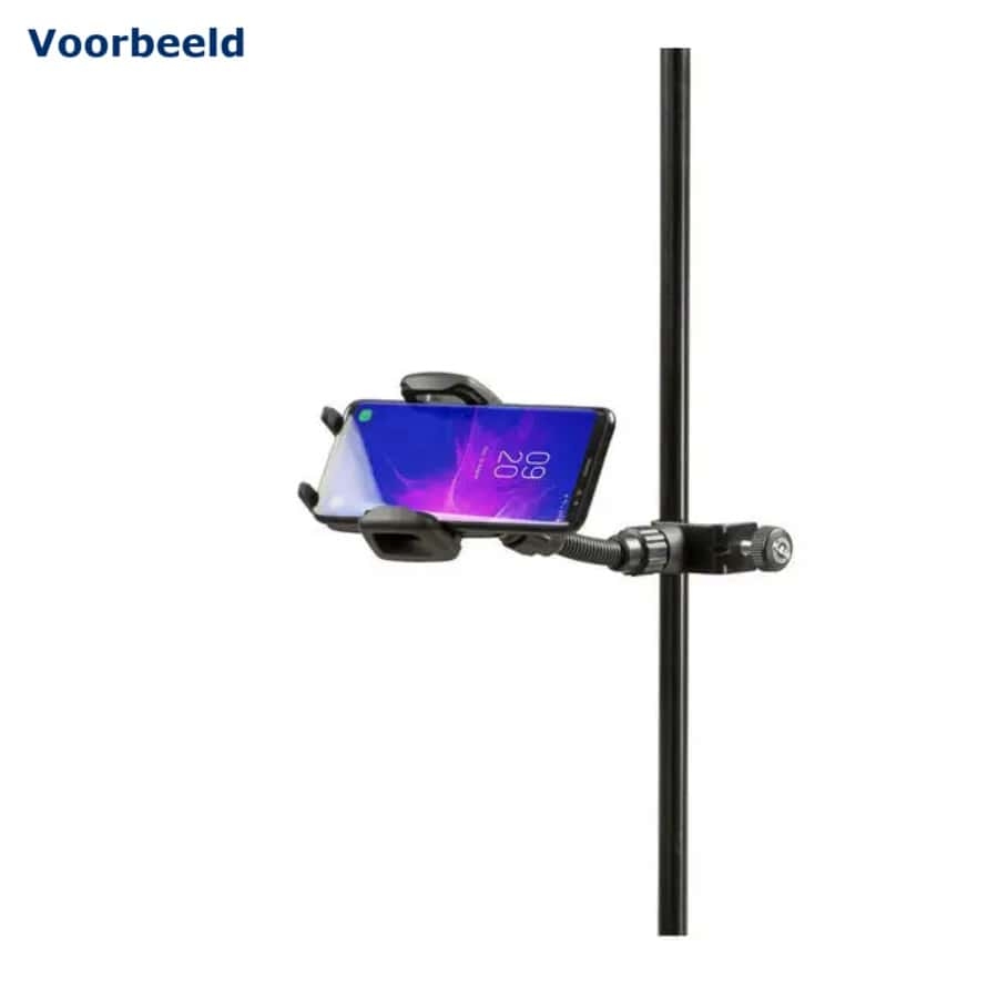 De 19747 is een handige smartphone houder van Konig & Meyer. De houder kan met de klem op uw statief worden vastgezet. De klem heeft een maximale breedte van 30 millimeter. Alle smartphones tussen de 60 en 84 millimeter zullen in de houder passen.