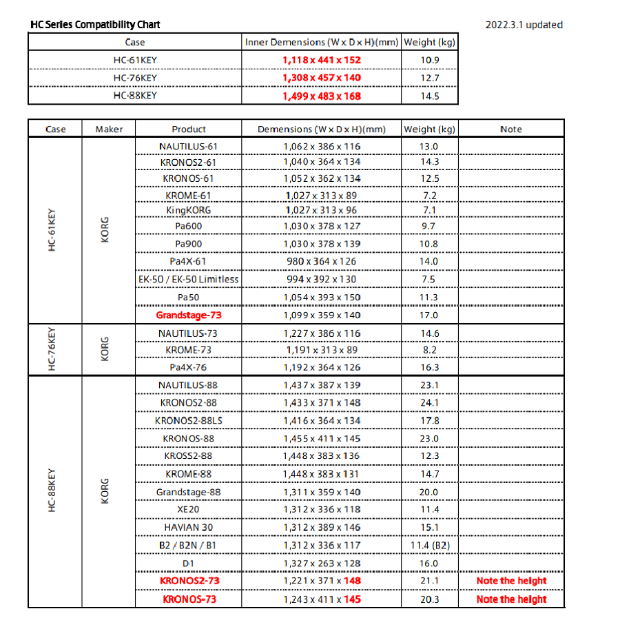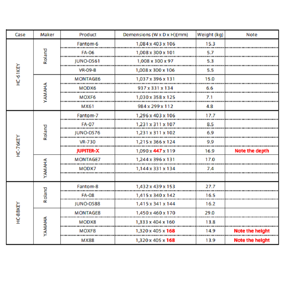 De Korg HC-88Key is onder andere geschikt voor deze Korg modellen: