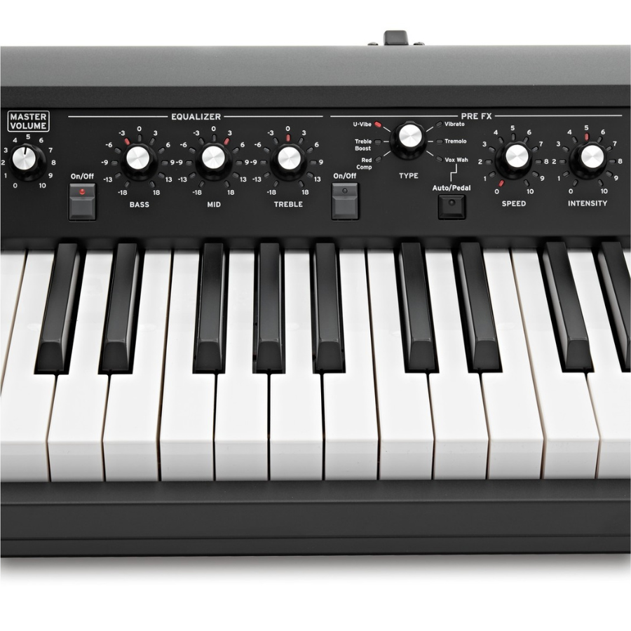 De ingebouwde effectsectie omvat o.a. compressor, U-Vibe, tremolo, chorus, rotary, plate-reverb en de geliefde Korg Valve Reactor buisversterking met 12AX7A-buis voor extra warmte. Dankzij XLR-uitgangen, MIDI, USB en drie pedaalingangen past de SV-2-73 in iedere setup.