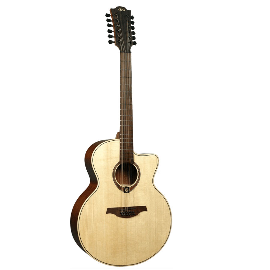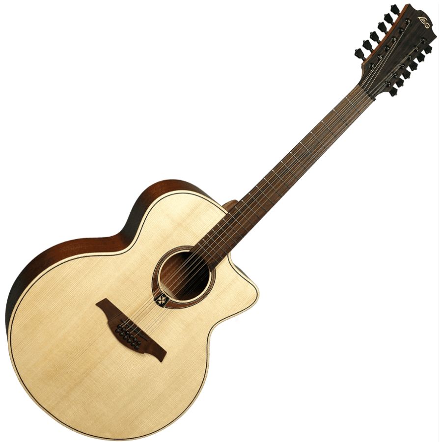 De T177J12CE is Lâg’s nieuwste 12-snarige gitaar met een geweldige prijs/kwaliteitverhouding. Lâg doet altijd goed onderzoek naar de klank van hun gitaren, en ook deze heeft een prachtig geluid. Het bovenblad is gemaakt van sparrenhout, en de achter- en zijkanten zijn gemaakt van ‘Khaya’ mahoniehout. Deze soorten hout samen met de 12 snaren zorgen voor een rijk en helder geluid. 12-snarige gitaren zijn in theorie gewoon western gitaren, alleen zijn er van alle zes de snaren er twee. De laagste vier snaren zijn daarbij een octaaf verschillend gestemd, en de hoogste twee snaren zijn hetzelfde gestemd. Dit geeft de gitaar een rijker geluid. Gitaristen die hier bekend om staan zijn onder andere Brian May en Don Felder. Dit maakt deze gitaar dus erg bijzonder, en voor dit prijsje is hij dan ook onweerstaanbaar!