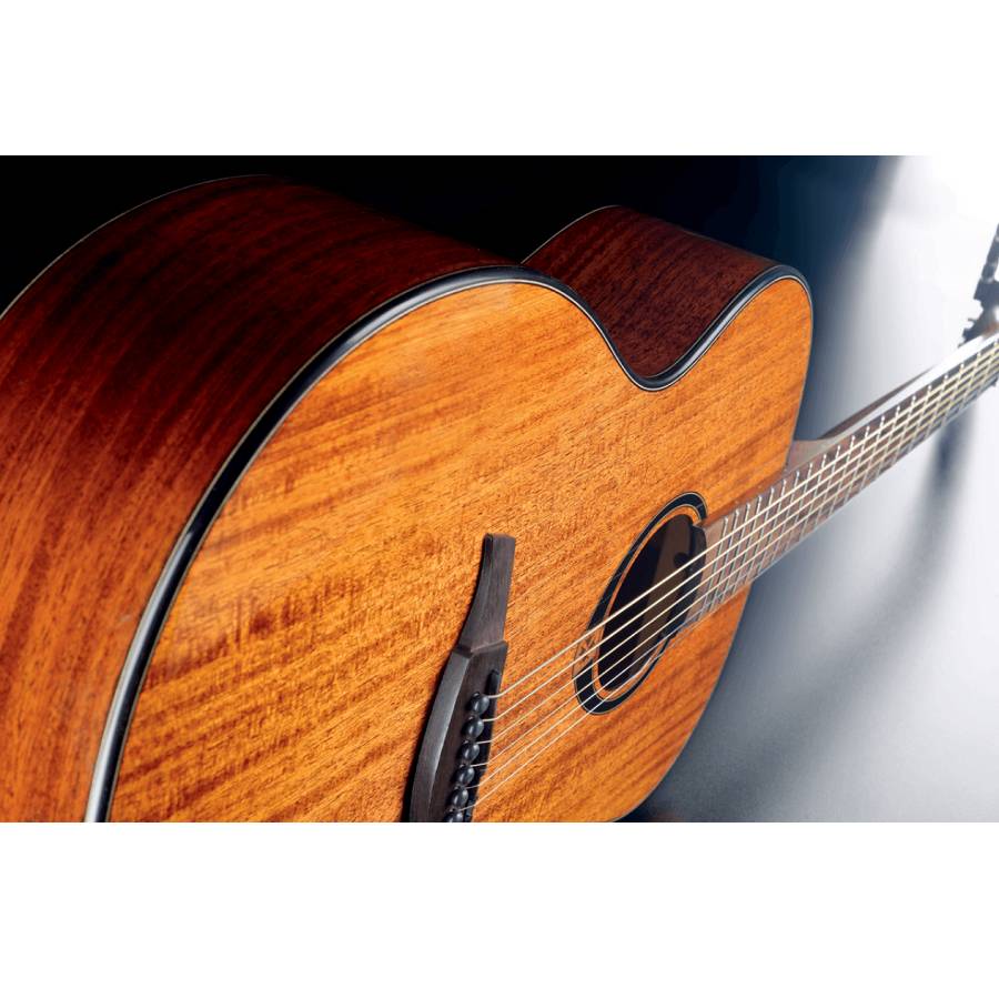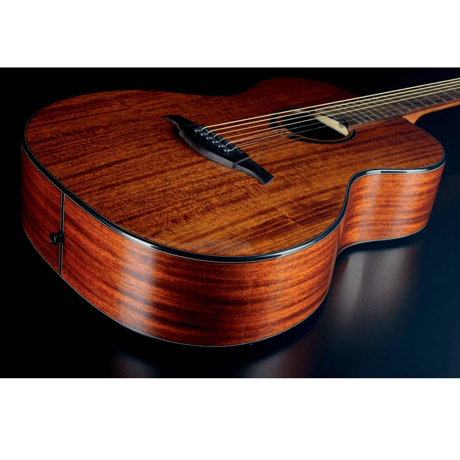 De Lag T90A is een relatief betaalbare maar toch erg goede westerngitaar. Bijzonder aan deze gitaar is de uitzonderlijke houtsoort wat een positief effect heeft op de klank en op het uiterlijk. Deze donkerbruine body is gemaakt van het Afrikaanse khaya hout. Een Mahoniesoort die bekend staat om zijn mooie kleur en prachtige bas en zijn gedetailleerde hoge tonen. De bovenkant is van massief khaya en de zij en achterkant van gelamineerd khaya. Zoekt u een mooie gitaar die niet al te duur is maar wel een groots geluid heeft? Dan is de Lag T90A een uitstekende keuze.