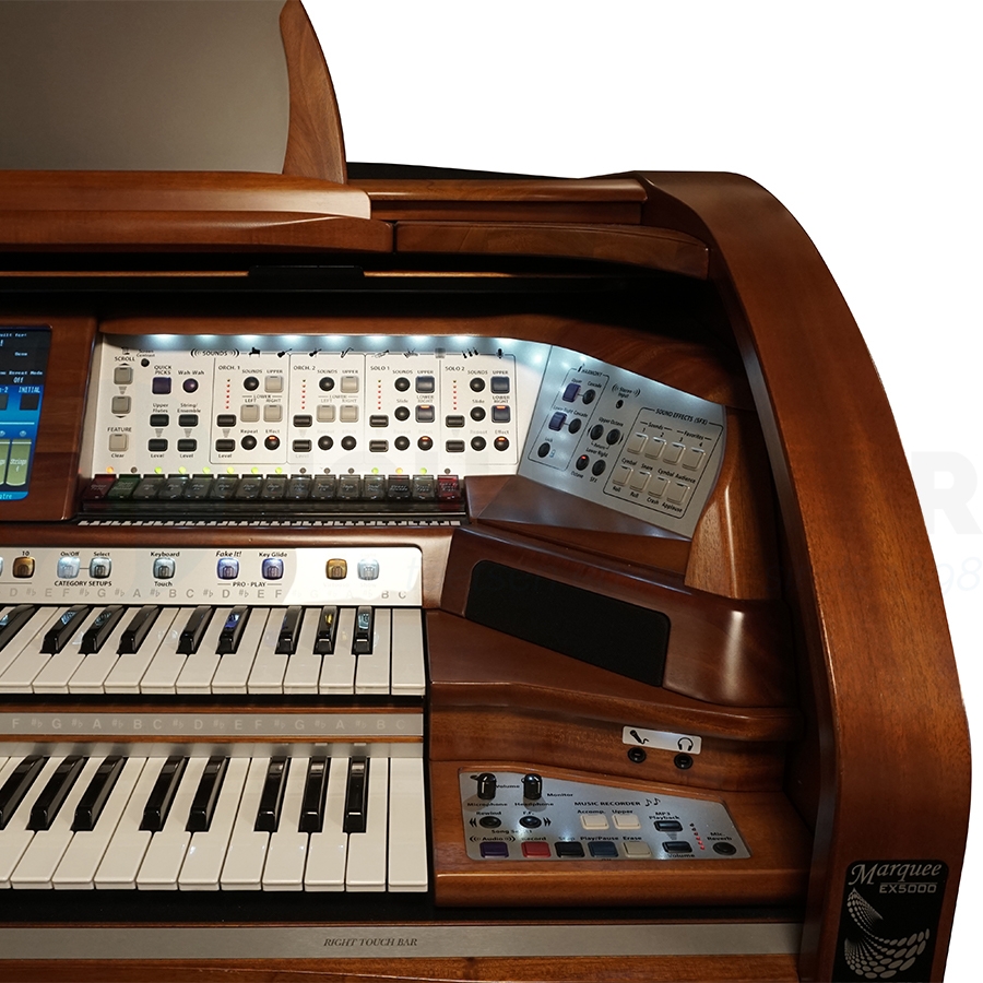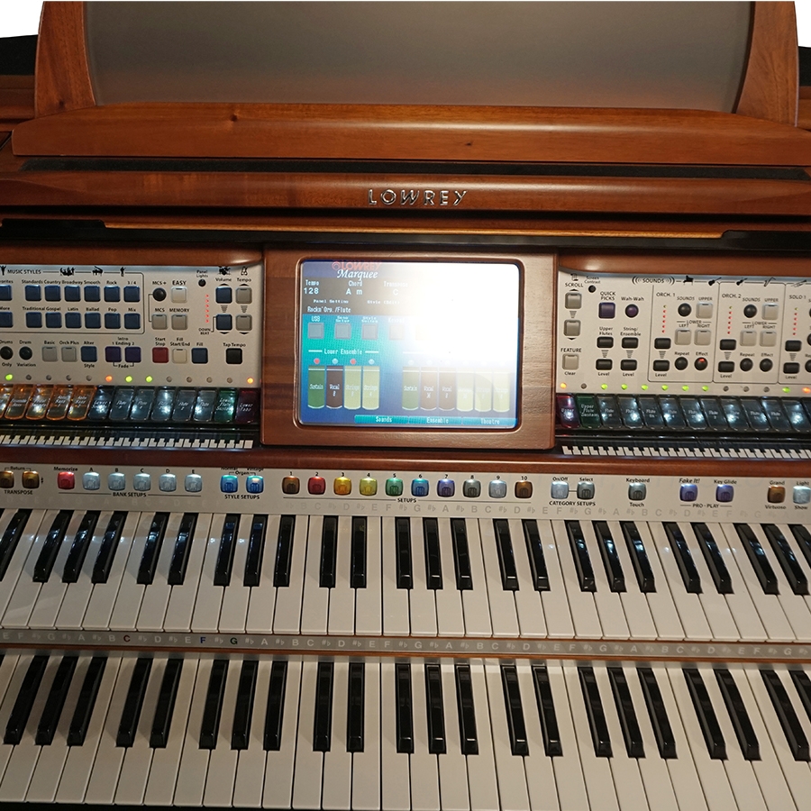 Waar het orgel het meeste in opvalt zijn de opties en klanken. Lowrey heeft al zijn beste orgelklanken in de Grand Marquee gedaan. Dit in combinatie met het uitgebreide speakersysteem zorgt voor een ongeëvenaarde speelervaring. Uiteraard zijn alle bekende stijlen van Lowrey ook aanwezig. Het orgel bedient u met het grote touchscreen boven het klavier. U kunt alle sounds en stijlen combineren en opslaan in setups. In totaal zijn er meern dan 12,000 setups mogelijk met dit indrukwekkende orgel. Dit alles maakt de Lowrey Grand Marquee Luxury Edition een geweldige keuze voor de veeleisende orgelspeler die op zoek is naar alleen het beste wat de markt te bieden heeft.