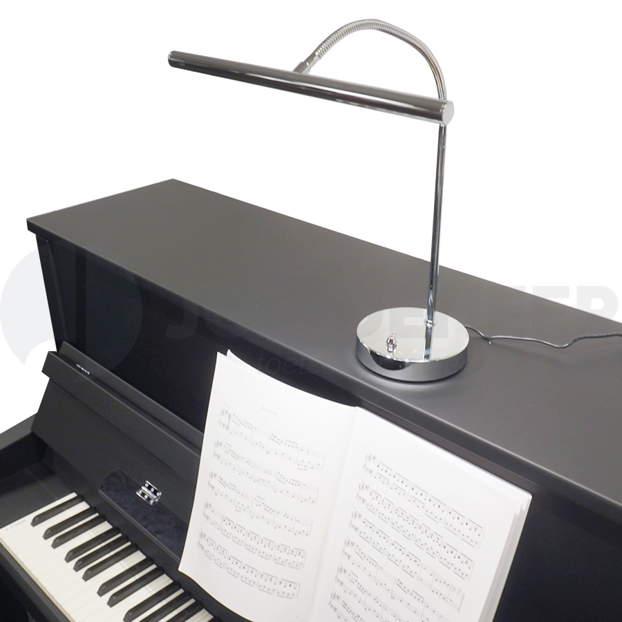 De met de hand in Duitsland vervaardigde Ludio PL-60CH pianolamp is een ware aanwinst voor in elke huiskamer. Deze sierlijke lamp is met ronde voet en zwanenhals wat klassieker vormgegeven en staat zeer fraai op de meeste piano’s. Met 24 warme licht gevende led-lampjes zorgt de PL-60 voor een zeer fijne belichting van de bladmuziek. De PL-60 is leverbaar in verschillende uitvoeringen, deze variant is chroom uitgevoerd.
